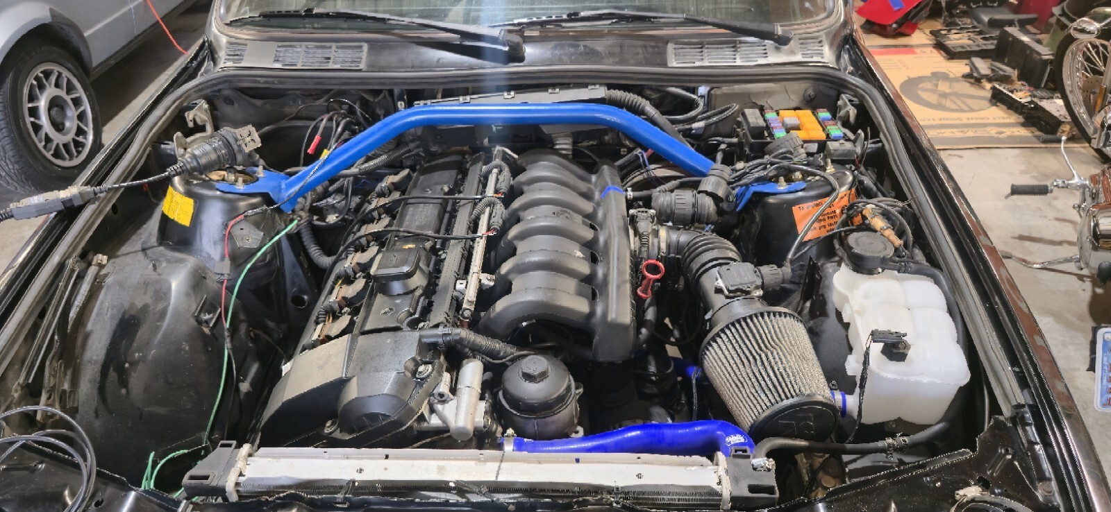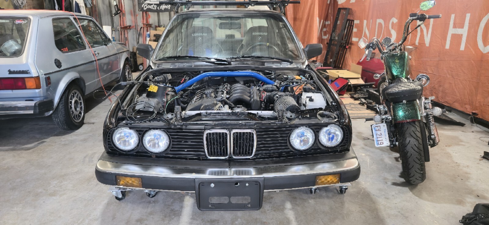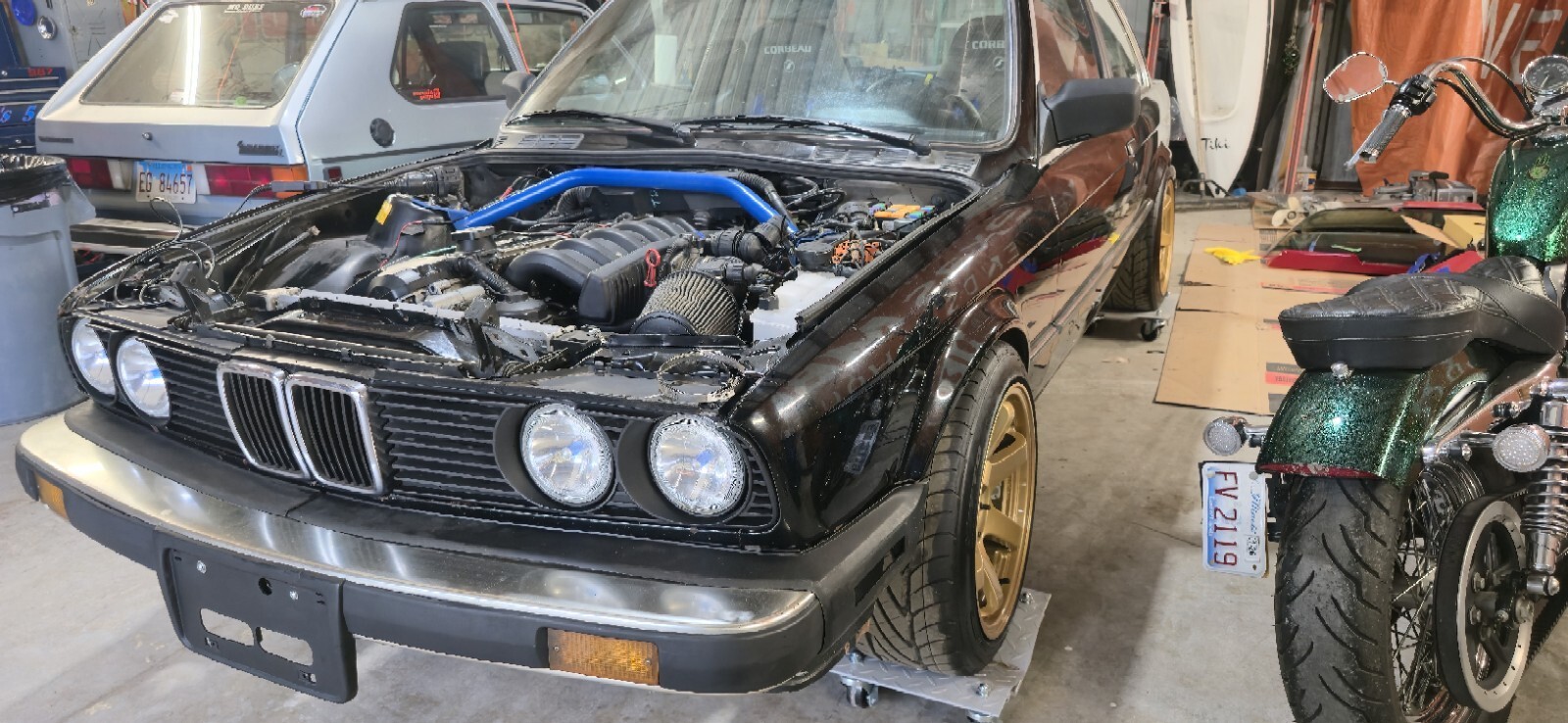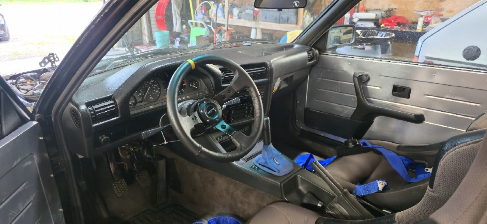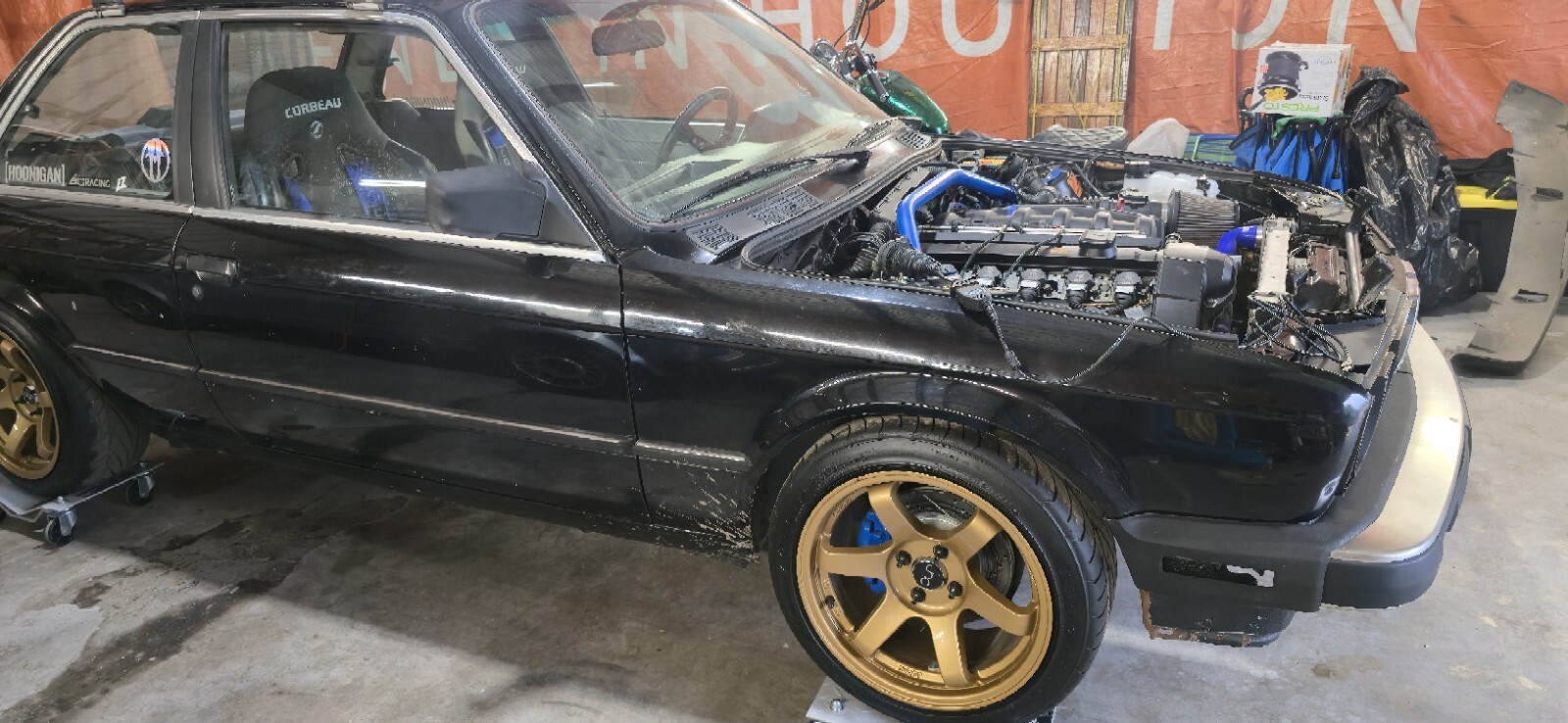 1987 bmw 325e. M52 swapped. I bought 2 e30 bmws as a pair and this one is swapped. Im somewhat of a purist and not into swapping engines. Also this thing is set up to drift and that's not my thing. I did not do this swap and I dont know anything about it. Someone spent some good money building it though. I included a pic of a list of parts on ot that eas goven to me when i purchased it. The car starts right up and runs, but it will die on the down rev when you give it gas. You will need to have it towed or transported. Clean clear title in my name, in my hand.