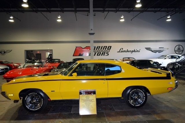 Marino Performance Motors is proud to present this extremely rare1970 Buick GSX Motion Performance car! This is the only known and documented '70 Buick GSX converted by Motion Performance in existence. This car is #339 of 678 documented by the GSX Historic Society and Joel Rosen of Motion Performance. It was featured in Muscle Car Enthusiastin October 2006! This well-documented GSX also comes with a summary of its history, spec sheet, hotos of the restoration process, copy of its feature inMuscle Car Enthusiast magazine and a letter from the President of Motion Performance confirming its authenticity. For more information, lease contact Gil at 561-756-6029 or email info@marinoperformancemotors.com This GTX was rotisserie restored by Then and Now Restorations here in Atlanta, eorgia. Factory features: GSX ornamentation package, hich includes -- Color-keyed sport mirrors Front and rear spoilers Hood an body stripes Decals on quarters and rear spoiler Grill an dash emblems Color-keyed headlamp bezels Hood tachometer Black-stripe rocker moldings Quick-ratio power steering Front power disc brakes Rally ride control package, hich includes: Rear stabilizer bar Front and rear firm-ride springs Rear-boxed lower control arms Air conditioning Rally clock and gauges Soft ray tinted glass Padded rally tilt steering wheel GS 455 engine TH 400 transmission Motion added features: Factory exchange block built to exceed stage-1 specifications Mickey Thompson competition-plus headers Edlebrock B4B intake Holley 980 CFM 3 BBL carb Dual electric fuel pumps Fly’s Eye air cleaner Keystone wheels Mickey Thompson Indy-profile SS tires Hurstshocks Chrome valve covers with Motion emblems Phase III Accel distributor and coil Thrush exhaust Lakewoodladder bars Chevy 12-bolt rear end with4:10gears ET finned differential cover Barrel lock hood pins Motion emblems on fenders and dashIf you are in the market for the rarest Buick muscle car ever built for investment or fun, ere you go. Please contact Gil for more information at 561-756-6029 or by email info@marinoperformancemotors.com