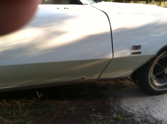 | I purchased this car from a man in North Carolina it was in his family since new and I have been driving some it gets looks wherever we go.I planed on restoring it but just don't have the time right now.These cars are getting harder and harder to find.Its a real GS I haven't checked but prob #'s match.Please feel free to contact me with any Questions It runs perfect I was told engine was rebuilt 5?yrs ago.Transmission shifts perfect,Wipers are slow needs heater motor haven't had time to check it out.Dash is cracked but I have one that goes with the car.Front fenders have no rust bumpers have been replaced but missing rubber trim.Has ram air hood and aircleaner.The Trunk is really good has surface rust no big blisters or holes it just needs some sanding and prep and painted.This car needs a new top and Interior kit and a paint job.Body is very solid worst rust is the passenger door but it it can be repaired and all the rest of the rust is minimal can be repaired.It does not need any panels replaced.Also Steering wheel is cracked.I also have extra dash cluster It has a CD stereo radio in dash looks good and plays good. |