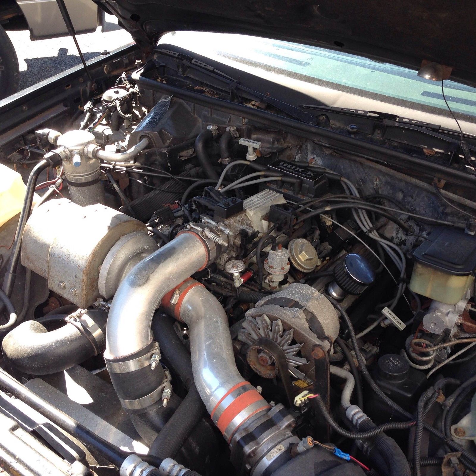 | This is a 1987 Buick Regal Grand National with the 3. 8L Turbocharged V6. This car has a factory sunroof which was a rare option and gives you the same open air experience as the T-tops without the rattling and leaking. The engine and transmission where rebuilt approximately 30. 00 miles ago. at that time they were lightly modified. Modifications for the motor include: a TA-49 turbocharger. a bigger intercooler. upgraded intake. 42 lb injectors. turbo tweak ECU chip and Scanmaster system. Modifications on the Transmission include: A 3000 stall torque converter and a shift kit all by Art Karr. The Fuel pump was also upgraded and finally the car has a Hooker cat back exhaust system. The mileage on the chassis is slightly more than the 156. 00 indicated on the odometer. nbsp; the reason being that the speedometer needed to be replaced with a used unit. The car runs fine with the only mechanical fault being the pump on the GM Powermaster brake booster has failed so it currently has reduced braking power. This unit can either be rebuilt or relatively easily swapped out for a conventional vacuum booster. The exterior of the car is in fair shape and the paint is this car's weakest feature. The clear coat on the hood is very weak. The interior is in better than average shape for a car of its age with no rips in the seat and only a single crack on the dashboard. The radio sounds great and the air conditioning blows cold. The car is located in Hampstead MD. Buyer is responsible for pick up or shipping. The car will also continue to be for sale locally throughout the auction. |
