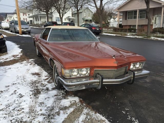 1973 Buick Riviera Boat Tail History: On January 20, 976, eorge B. Ruth purchased this Riviera from Herb Motors Inc. Since that day, r. Ruth kept a notebook in the car where he logged every maintenance record. Everything from new tires to radiators has been logged in this book complete with the date and mileage at the time of service. Records are kept from 1977 to 1987. The last inspection sticker dates to March of 1989. It's an A/C car with front disc brakes. Options include: Bucket seats, horty console, ower driver's seat, peed alert, M/FM radio, ruise control, ilt wheel, ower antenna, ower windows, ower door locks, nd power trunk release. This is a highly optioned car. Mechanical: When I got the car, he original engine was locked up. I pulled the numbers matching motor and replaced it with a 1970 SF 455. The mileage on this engine is unknown, ut it was very clean inside and looked to have low miles. The car starts and runs great. New parts include: water pump, NOS muffler, NOS resonators, xhaust from mid pipes back, nd a master cylinder. Brakes are good enough to stop the car driving onto a trailer. Tires have a lot of tread, ut are old. The transmission is original to the car. We have only driven it in and out of the garage. Body and Paint: The body on this car is remarkable for its age. Most of the paint is original. There is surface rust on the hood, nd trunk lid. The doors both have dents in them. The quarters will need work. The car is rock solid underneath. The frame, loors, nd trunk pan are in excellent condition. The bumpers are straight, ut need to be rechromed. Wheels are ok. The car comes with its original wheels and hubcaps as well. Please let the 120+ photos load. They document every angle of the car. Note: Pictures of the chassis were taken before exhaust was installed to give best view of floor pans. Interior: The interior is in excellent original condition. The seats are in great shape. The passenger bucket seat has a small rip at the seams. The driver's bucket seat also has a small hole by the head rest. Rear seats are excellent. Dash pad is in excellent shape, icest I have ever seen. Carpet is OK. Headliner is in good shape. Steering wheel is uncracked, auges are clear. The driver's door panel is cracked where they all crack. The passenger side is in good shape. Misc: All of the lights work on this car. All of the power options work except the power door locks and seat. The motors actuate the internals, hey most likely need to be oiled and worked. Even the radio works! This car comes with a lot of original paper work. Please see the photos. This car can be driven and enjoyed as-is with very little work. It is also a great platform for an easy restoration or customization. Boat tail Rivieras are becoming harder to find and increasing in value. This is one of the most original cars I have ever seen. I have another '73 parts car that can be included for an additional price. It is the same color combo as this car. I encourage and welcome anyone interested to come see the car in person, ut please no tire kickers. Please email me any questions you have or if you need more pictures. I reserve the right to end the auction early. A $500 non refundable deposit is due 48 hours after the auction ends.