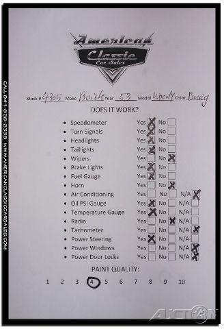 Very well preserved woody wagon! This 1953 Buick Super has to be one of our coolest car in stock. Genuine woody with real wood moling along the sides and rear hatch. The color is a very rich looking burgundy with a dark red interior. V8 Automatic. Car runs and drives great. Has some common wear but for an all original, ust free car, t is in sensational shape. Please call for more info 941-928-2339. www.americanclassiccars.com We ship, e finance, e trade. 1953 Buick Super Specifications The 1953 Buick Super featured Buick's first-ever V-8, hich would serve the division (with modifications) well into the next decade. Specifications Engine: ohv V-8, 22 cid (4.00 × 3.20), 64/170 bhp Transmission: 2-speed Dynaflow automatic optional Suspension, ront: upper and lower A-arms, oil springs Suspension, ear: live axle, emi-elliptic leaf springs