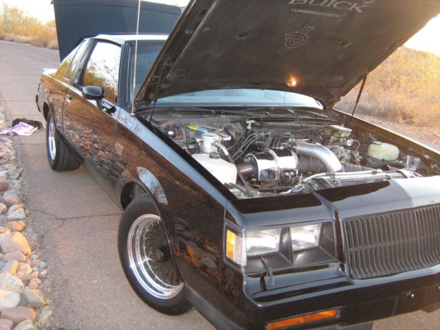 If you are serious about buying a GN and it is important to you that you know exactly what you are getting then look no further. I have most every receipt from day of purchase and all work done. I will gladily share The good, what i would do if kept and some of the minor fixes one could expect from a car this old. 2 owner GN. Bought here in Phoenix from chillness buick in 87. Garage kept it's whole life. Have receipts going all the way back totaling the purchase of the car 2x over to keep up, improve performance etc.. mostly all original minus bolt on performance items. Have few extra take off parts including regular maintenance items like plugs, ignition module and more. 3 inch down pipe new exhaust, newer battery, oil change.Transmission freshly built. Motor and tranny and most if not all besides dealer kept up and tuned right by Arizona Gn and James the tranny expert. 63 turbo, 80lb injectors, new fuel pump. This car is easily a 20k car but because it shows 199k mileage most would presume not to even consider. infact i did not originally for same reason until i met the owner and could see for self how much he cared and spent on his baby like me. Bottom line is this car for the money you will pay you would be hard pressed to find anywhere else. Dont be fooled that all GN reflect actual mileage. The odometer turns at 99k. i have seen G, turbo regals that claim to have 30k original mileage that have looked and drove half as nice as this one. No B.S. Call me if you want a great car at great price and would like to know more. This car will do 11 in quarter per the JAN at extreme engineering who tuned on dyno. It seems impossible to me to tell you all the little things and some big (like engine overhaul by AZ gn at 130k) Things like drive shaft safety brace, back seat trunk reinforcement body flex bracket, best fuel pump, engine torque strap. accept for minor wear on front seat and console top which has been replaced once the rest of the interior is like new. you can see from repaint 8500 dollars worth while ive owned i, bumper fillers new, new molding and on and on i could go. email or call. I will work with your transport once money transfer complete to get on trailer with special care to make sure it arrives as left. Thanks Gus 602-478-7146