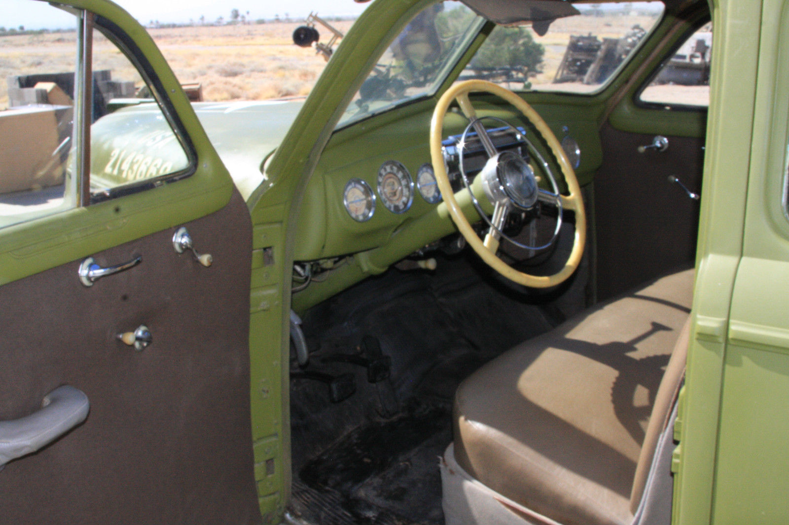 | 1941 Buick Straight 8 Dual Carb 4-door Sedan Odometer: 6872. Taken in a real estate trade and driven into storage 15 years ago. Located Maricopa. Arizona 85138 Army two-star general staff car; Army Olive Drab (OD) green paint scheme with faux bullet holes Solid body; no rust/clean original interior All original; effort to return to service over the last 18 months: New brake shoes. hardware. wheel cylinders. master cylinder all rebuilt New 6-volt Battery New spark plugs. spark plug wires New distributor cap and rotor New ignition lock cylinder and key Fuel tank drained and flushed All tires very good condition; no dry-rot Arizona Historic Plates Engine turns over and sputters; does not run. suspect that both carbs need rebuilding. Dusty pictures are the most recent. 1941 Buick Super Data Plate: Buick Motor DivisionGeneral Motors Corporation 1941 Mod 51 Style No. 41-4519 Body No. C-2764 Trim No. 905 Paint No. 564 Top ACC Body By Fisher |