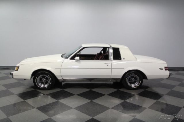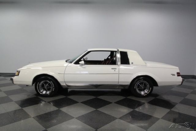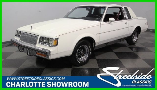 This is the cool cruiser that's going get you the survivor awards. After all, when was the last time you saw a 1986 Buick Regal Limited coupe in such a nice and preserved condition? With its original V8 power, plush A/C interior, and all-around well-preserved presentation, this is a time capsule on wheels. The unique design lines made these Regal coupes quite popular when new. So you probably have a story or two that come to mind the moment you see that bright waterfall grille come into view. But the reason why you're especially attracted to this one is because you just don't see them in this kind of well-preserved condition anymore. The factory-correct white paint shows all signs of being original, and quite well-kept for over three decades. Plus, the coordinating white half vinyl roof adds to a timeless elegance. And speaking of tasteful class, this one wears its chrome bumpers, bright headlight bezels, and classic Buick Rallye wheels with distinction. But also take some time to look at some of the detail work like the maroon pinstripe and complete badging - this is a true lesson in preservation. A rich velvet-like cloth awaits you inside this upper-class Limited model. It's nice how the maroon pinstripe on the outside was a preview of the factory interior color. Also, just like the exterior, the interior still looks amazing thanks to a survivor-level of care. All the wood trim coordinates nicely while it also provides extra distinction. This can seat up to six, but fold down the front armrest, and it provides you with individual pillow-top luxury. This coupe comes loaded with power windows, power locks, tilt steering column, plenty of wood-like trim, and the original AM/FM/cassette stereo. Because you want to eat away the miles in comfort, there are great cruising features like power seats, cruise control, and the air conditioning upgraded to modern R134a. Open the hood for more originality. This is the numbers-matching motor, and it's presented in the kind of time capsule quality where you still even have the factory decals. The 307 cubic-inch V8 is a wonderful power plant to have, and it was shared with luxury machines like the Oldsmobile Toronado and the Cadillac Brougham. That's because it's smooth and torquey, and there's nice power from the four-barrel carburetor. More of this Regal's great cruising capabilities come through with features like a three-speed automatic transmission, power steering, front disc brakes, and Buick's legendary supple ride. This is a low-mileage car that has stayed under the care of the same family all its life. It's a shining example of a survivor, and now it just needs the right caretaker to continue its preserved legacy. Will that be you? Call now!