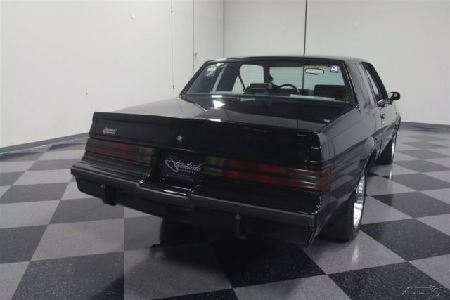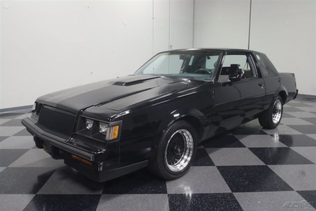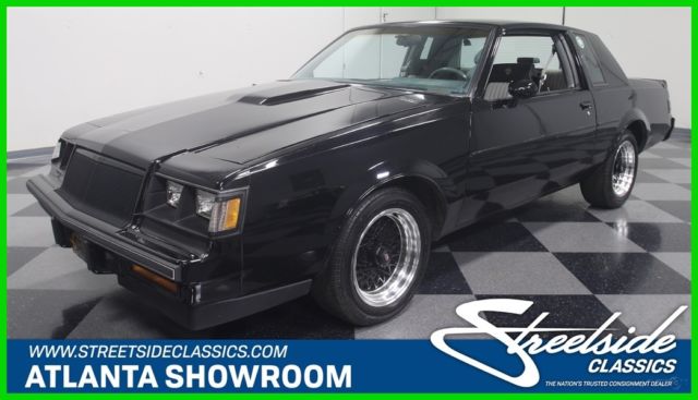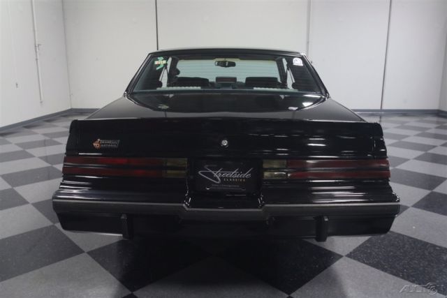 Even 30 years after they went out of production, there's something special about the Buick Grand National. Maybe it's the fact that this otherwise plain-looking Buick was arguably the fastest accelerating car on the market, or maybe it's because they have just the right combination of performance and luxury, and with some well-tuned upgrades, this 1986 Buick Grand National is a very impressive car. Most car guys know that when they see a black Buick, they need to be careful. Sure, after all this time there are faster cars, but if you're not paying attention, these cars will drop the hammer and not look back. And with modifications so insanely easy to do, you can build an incredibly fast and completely reliable car for not a lot of cash. Wearing its original black paint and no visible modifications, it's the right choice for the Buick fan who doesn't want a low-mile garage queen, but a big, bad Buick he can actually enjoy the way it was intended. It still looks intimidating with every square inch of the bodywork drenched in black paint, but that was entirely the point. It's brutal-looking. Owned by an enthusiast, you know it hasn't been wrecked or abused and that finish is nicer than most of these cars today, especially given GM's paint issues in the '80s. It's not perfect, but you can drive it without worries. So what you're getting is a super clean but ready-to-enjoy Grand National that's exactly right for prowling the streets. The interior is pure 1980s Buick plush, with black and gray power buckets and a console just to add a bit of sportiness. Yes the seats need to be reupholstered, but given how popular these cars have become, fresh seat covers should be easy to find. Auxiliary boost and oil pressure gauges in the center console look like they were installed by the factory and a second pair of gauges on the A-pillar. A typical GM instrument panel with a cleverly-installed tachometer down in the lower corner and a big T-handle shifter manages the recently rebuilt 200R4 4-speed automatic overdrive transmission. Everything was standard on the top-of-the-line GN, including A/C, power driver's seat, windows, and locks, and the original Delco radio has been replaced by a modern AM/FM/CD head unit. It also claims a nice sized trunk that's ready for a road trip and includes the original space-saver spare. The legendary powerplant is a 3.8 liter turbo V6 that's famous for making torque at any speed. Once the boost comes up, these cars are almost impossible to catch and thanks to decades of development, good ones are virtually bulletproof today. This one was rebuilt and upgraded by noted experts South East Turbo in Georgia in 2015. The upgrades include a bigger turbo and oversized fuel injectors, a big front-mount intercooler, Walbro 340 fuel pump, an upgraded camshaft, and a Turbo Saver oiling system. Combined, they make big power that's impossible to resist and will humiliate some of today's fastest iron. The engine bay is quite tidy and it's pretty obvious that the money was spent where it counts most. The transmission was rebuilt at the same time and it got new brakes and front end parts in 2016, so it's totally ready to rock. Sinister black mesh Grand National wheels look great and wear recent Continental performance radials. These cars have always been formidable, but today collectors are noticing that good ones are scarce. This one isn't a beauty queen, but it certainly has the horsepower to deliver on the promises made by the brutal look. Call today!