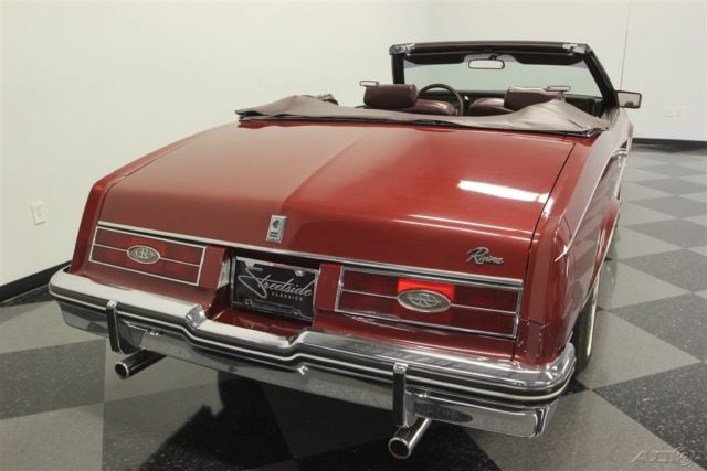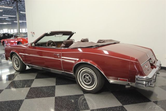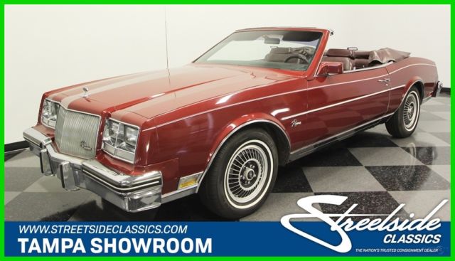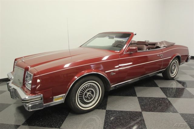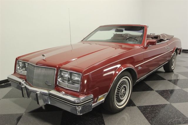 This 1985 Buick Riviera is a turbocharged convertible with a story to tell. After all, this is like the Buick Grand National's more luxurious droptop cousin, and it was this special series that helped revive ragtops at General Motors. But these Buicks remained a rare sight (less than 50 turbo convertibles were sold in 1985) because of the exceptionally high base price. This has been a garaged treasure all its life, and you'll know it the moment you see the original Red Firemist paint. This one has the kind of features and rarity that will make it a survivor hit at any car show. After all, these were almost like owning a custom car backed by a factory warranty. Few people were willing to pay nearly double the price to pluck a car off the assembly line and let the professionals at ASC do their droptop magic. That's why this special Buick has been cared for so well and the sheetmetal has stayed laser straight. This level of care goes right down to the details with the trim running down the sides and the pinstripe that perfectly highlights the gentle curves of the 6th generation Riviera. And that pinstripe is particularly attractive with the matching white roof in place. The chrome is bright and shiny, the rubber bumper fillers are in excellent condition, and all the emblems and lenses are beautifully clear. It even still wears its more aggressive T-type turbine wheel covers reserved for these rare turbo models. These were top of the line Buicks that reached into Cadillac territory, and so burgundy leather came standard inside. The full package still looks amazing, which tells you this was not left with its top off too long on sunny days. The handsome bucket seats strike a nice balance between armchair comfortable and individual support. The burled walnut veneer is some of the most handsome trim for any car in the 80s, and as expected with such an expensive convertible, it came loaded. This includes power windows, power convertible top, power locks, cruise control, power driver's seat, and a factory AM/FM/cassette stereo. Plus, there's automatic climate control with air conditioning so you can stay cool even with the roof down on a summer day. But there's something else you might have noticed. This one has a full set of auxiliary gauges, including a boost gauge, and that's for a very good reason. Under the hood is the original turbocharged and fuel injected 3.8-liter V6 that was made famous in the Buick Grand Nationals of the era. This motor gave the Riviera one of the most admired 0 to 60 times in the luxury class and made it a bit of a secret rocket ship. It even has a fully independent suspension with sway bars front & rear to make it a sharp handler. Still, this Buick does not betray its luxury cruising nature with its power steering, front disc brakes, four-speed automatic transmission w/highway-friendly overdrive. Owning this Riviera turbo convertible means instantly joining a very exclusive club. It gets even better with fact that this is a true survivor right down to the original warranty card and owner's manual. It's amazing that this kind of desirable package and rarity can be had at such an affordable price. Call today!!!