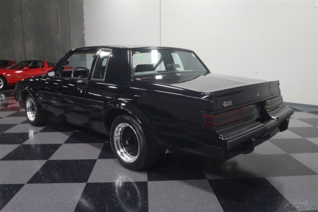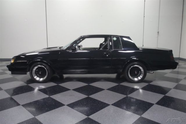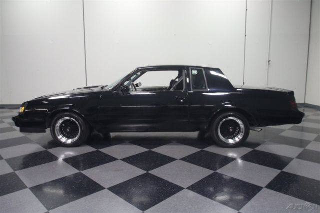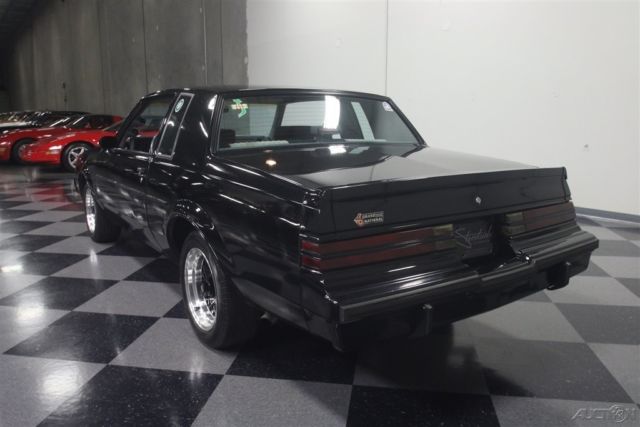 Even 30 years after they went out of production, there's something special about the Buick Grand National. Maybe it's the fact that this otherwise plain-looking Buick was arguably the fastest accelerating car on the market, or maybe it's because they have just the right combination of performance and luxury, and with some well-tuned upgrades, this 1986 Buick Grand National is a very impressive car. Most car guys know that when they see a black Buick, they need to be careful. Sure, after all this time there are faster cars, but if you're not paying attention, these cars will drop the hammer and not look back. And with modifications so insanely easy to do, you can build an incredibly fast and completely reliable car for not a lot of cash. Wearing its original black paint and no visible modifications, it's the right choice for the Buick fan who doesn't want a low-mile garage queen, but a big, bad Buick he can actually enjoy the way it was intended. It still looks intimidating with every square inch of the bodywork drenched in black paint, but that was entirely the point. It's brutal-looking. Owned by an enthusiast, you know it hasn't been wrecked or abused and that finish is nicer than most of these cars today, especially given GM's paint issues in the '80s. It's not perfect, but you can drive it without worries. So what you're getting is a super clean but ready-to-enjoy Grand National that's exactly right for prowling the streets. The interior is pure 1980s Buick plush, with black and gray power buckets and a console just to add a bit of sportiness. Yes the seats need to be reupholstered, but given how popular these cars have become, fresh seat covers should be easy to find. Auxiliary boost and oil pressure gauges in the center console look like they were installed by the factory and a second pair of gauges on the A-pillar. A typical GM instrument panel with a cleverly-installed tachometer down in the lower corner and a big T-handle shifter manages the recently rebuilt 200R4 4-speed automatic overdrive transmission. Everything was standard on the top-of-the-line GN, including A/C, power driver's seat, windows, and locks, and the original Delco radio has been replaced by a modern AM/FM/CD head unit. It also claims a nice sized trunk that's ready for a road trip and includes the original space-saver spare. The legendary powerplant is a 3.8 liter turbo V6 that's famous for making torque at any speed. Once the boost comes up, these cars are almost impossible to catch and thanks to decades of development, good ones are virtually bulletproof today. This one was rebuilt and upgraded by noted experts South East Turbo in Georgia in 2015. The upgrades include a bigger turbo and oversized fuel injectors, a big front-mount intercooler, Walbro 340 fuel pump, an upgraded camshaft, and a Turbo Saver oiling system. Combined, they make big power that's impossible to resist and will humiliate some of today's fastest iron. The engine bay is quite tidy and it's pretty obvious that the money was spent where it counts most. The transmission was rebuilt at the same time and it got new brakes and front end parts in 2016, so it's totally ready to rock. Sinister black mesh Grand National wheels look great and wear recent Continental performance radials. These cars have always been formidable, but today collectors are noticing that good ones are scarce. This one isn't a beauty queen, but it certainly has the horsepower to deliver on the promises made by the brutal look. Call today!