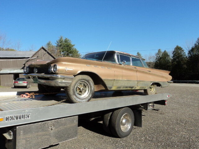 | 1960 Buick Electra 225, Series 4800, 4 door hardtop,4 windo, motor and radiator gone, crank is there, both manifolds and exhaust are there, A/C car, transmission good, very solid car, motor was removed because it was seized, the owner got sick and the car sat at a body shop for three years--there is no title as VT does not issue titles on vehicles over 15 years old--a dealer report of sale will be provided |