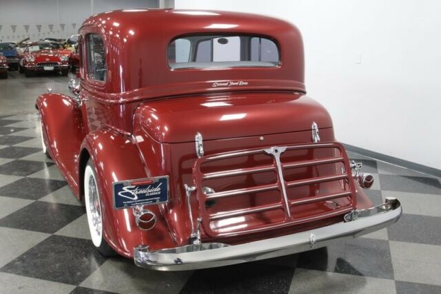 This 1933 Buick Victoria looks like pure elegance on the outside, and the custom white leather A/C interior really prove the point inside. But beneath the skin is big block power, four-wheel disc brakes, and an fully independent suspension. So you're going to want to check out all the details of this restomod, because this is an opportunity at something truly unique that offers the best of everything. This two-door gives the impression of nothing but long-lasting craftsmanship... in its first impression. It's a true 1933 steel-bodied Buick that has a solid feeling you understand the moment the doors latch. You'll love how people admire the tall Buick grille, shining headlight housings, true wire wheels, and fold-down trunk to add a steamer trunk on the back. There's pure elegance in the details - from the rear window wind deflectors, to the classic cowl openings along the hood. The maroon paint is the perfect color pairing as it gives this a bold but dignified presence as the light dances across those long front fenders. The only hints at the extra performance within are subtle pieces, like the top-mount sport side mirrors, tinted windows, and the wider/modern tires disguised as iconic whitewalls. Inside there have been more investments in custom luxury, and this is also where the car really begins to show its modern side. After all, you might have been able to get white leather in back in the '30s, but they never had an interior that looks as comfy as this. Not only do you get two individual seats up front with terrific bolstering, but also they power adjust to your ideal position. White on the door panels, tilt steering column, dash, and headliner really drive home the luxury atmosphere. Plus, you get the right modern comfort upgrades, like an AM/FM/CD stereo, cruise control, and ice-cold air conditioning. You'll love lifting the engine cover and showing the custom valve covers that announce this is a '33 Buick. But keen eyes will instantly understand that they never offered anything as powerful as this back in the day. It's a 402 cubic-inch big block V8. It inhales deeply from a Weber four-barrel carburetor, and it exhales with dignified authority out of the dual exhaust. While this is great for power, this Buick restomod is terrific for so much more. The fully independent suspension (both front and rear) has been integrated from a C4 Corvette to deliver a driving experience like no other '30s classic you know. Plus, there's rack & pinion power steering and four-wheel disc brakes. There's even a 700R4 four-speed automatic transmission with highway-friendly overdrive. So this cool cruiser provides a fantastic driver feeling near or far. This is the build that's comfortable for everything from the Power Tour to the morning commute. How many 1933 classics can you say do that?! That's why you know you need to hurry to grab this one. Call now!
