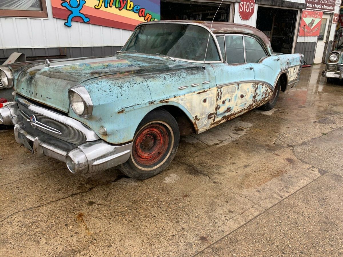 | FOR SALE IS A 1957 BUICK SPECIALFOUR DOOR HARDTOP;IT HAS POWER STEERING;POWER BRAKES;V-8 MOTORAUTOMATIC TRANNY;BEEN ABOUT 50 YEARS SINCE IT HAS BEEN ON THE ROAD;IT WILL NEED TOTAL RESTORATION.THIS WAS QUITE THE CAR IN ITS DAY;THERE IS SOME FLOOR RUST;THE TRUNK FLOOR ALSO HAS RUST;IT LOOKS TO BE COMPLETE EXCEPT FOR THE AIR CLEANER.I OFFER NO WARRANTY, SELLING AS IS.I CAN HELP ARRANGE REASONABLE SHIPPING;JEFF 218-464-2821 |