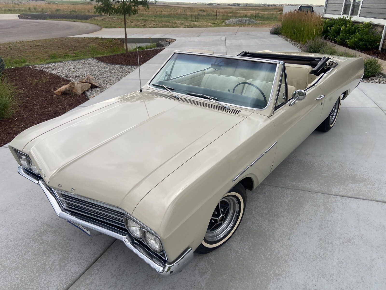 Wonderful cruiser and ready for a new home. Car was purchased new in 1966 and has been in the family ever since. Always maintained and cared for. Has one repaint and only 65,000 original miles on the 310 Wildcat engine. Automatic on the column with a full bench seat. Seat upholstery, dash, and convertible top are in excellent condition. There is just one split seam on the left side of the driver seat cushion. Body is in great condition with no rust. Doors open and close like an original car that has never been disassembled. Has some light damage to the right rear quarter panel where it scrubbed against something. Starts up right away and runs great around town. Lights, turn signals, heater, radio, etc. all work, other than the horn and I believe the switch in the steering wheel is likely the problem. I would recommend a tune-up before taking it on any long highway trips. Car comes with a bunch of extra parts that have been collected over the years. This is a NO RESERVE auction, so bid with confidence this car will sell. Clear Colorado title. All body number match and all body tags are in place. Please e-mail or call Darren @ 307-689-4343 with any questions.