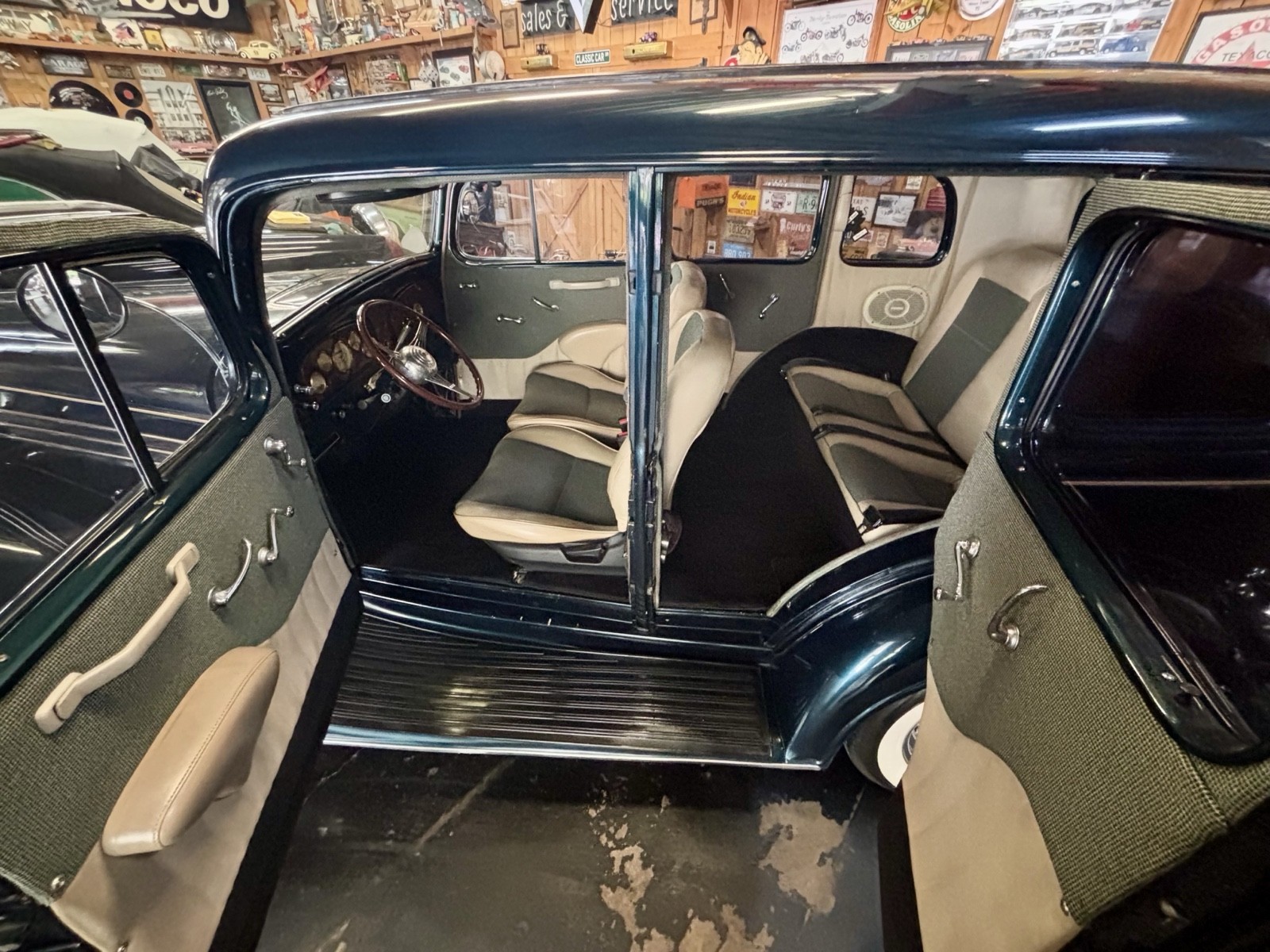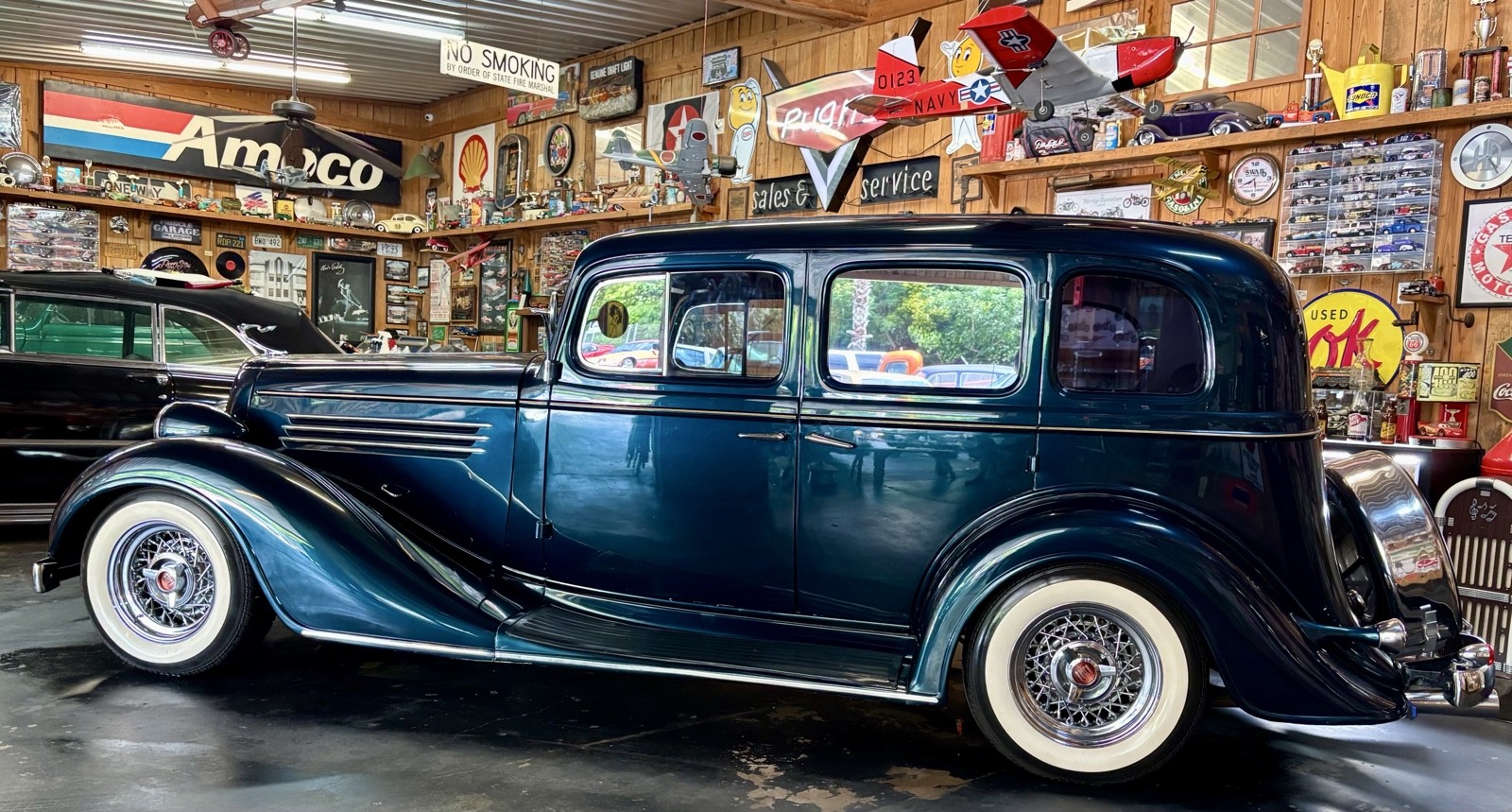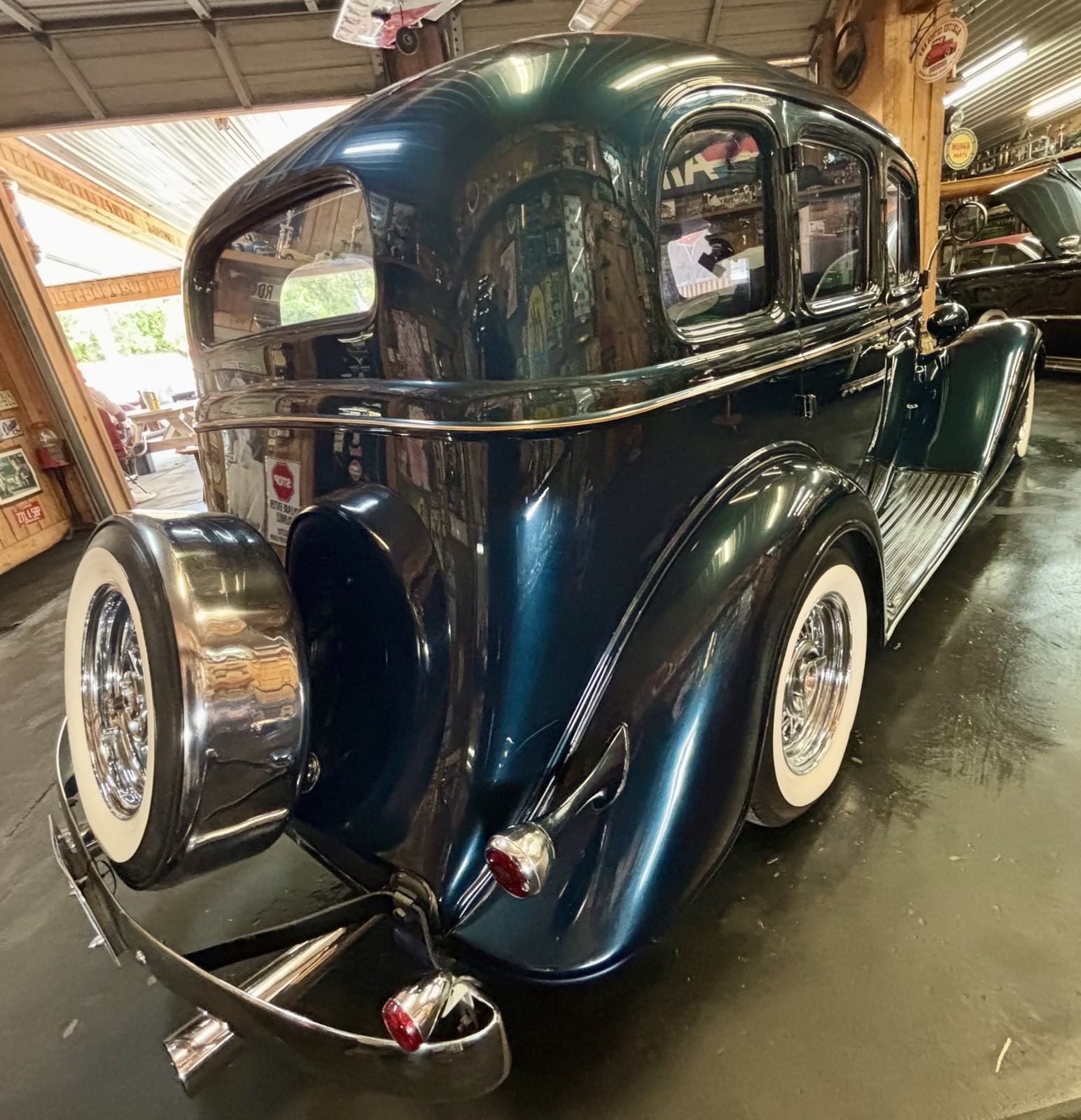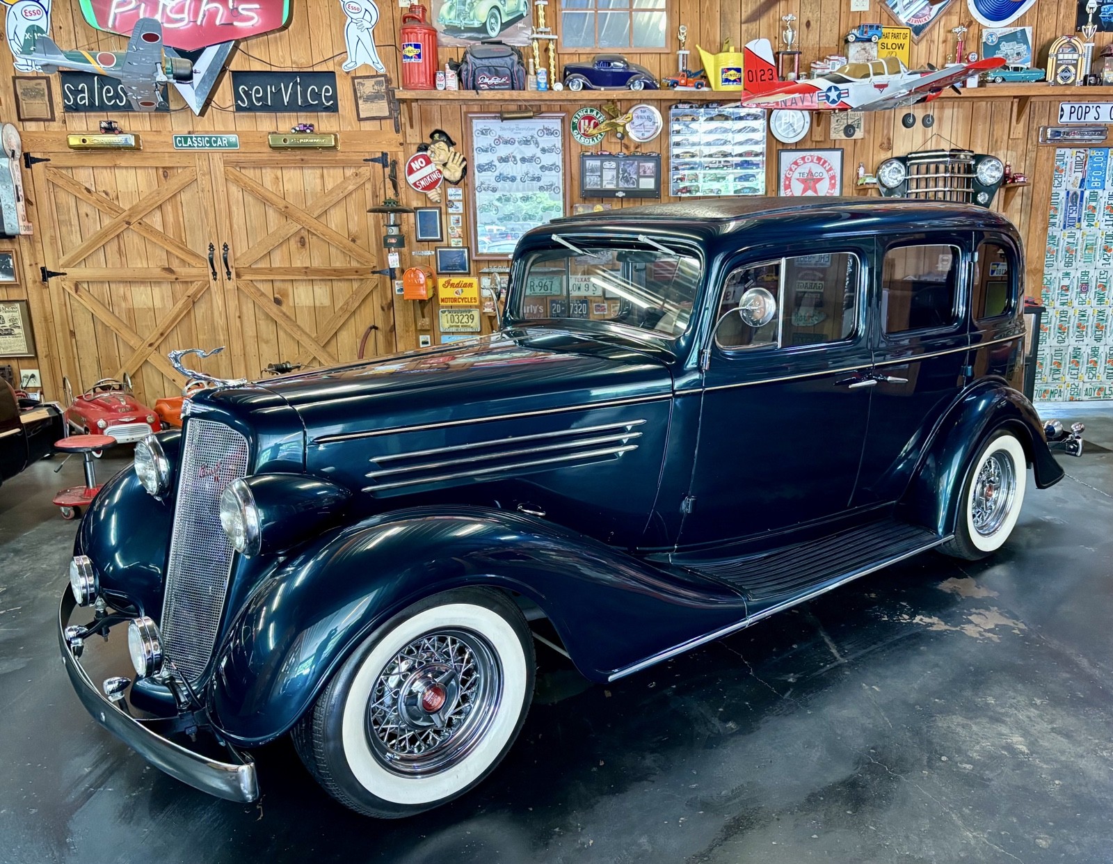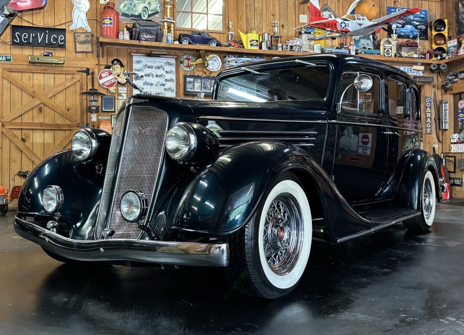 1935 Buick Series 40 Sedan Vehicle Details 350 Chevrolet with 700 R-4 automatic transmission. True dual exhaust with trumpet tips. Kelsey Hayes chrome wire wheels and like new Coker radial wide white wall tires. Power steering, power brakes, Vintage A/C, wind up windows that work flawlessly. Complete frame off restoration done in 2010. Mustang 2 fronted with disc brakes. |