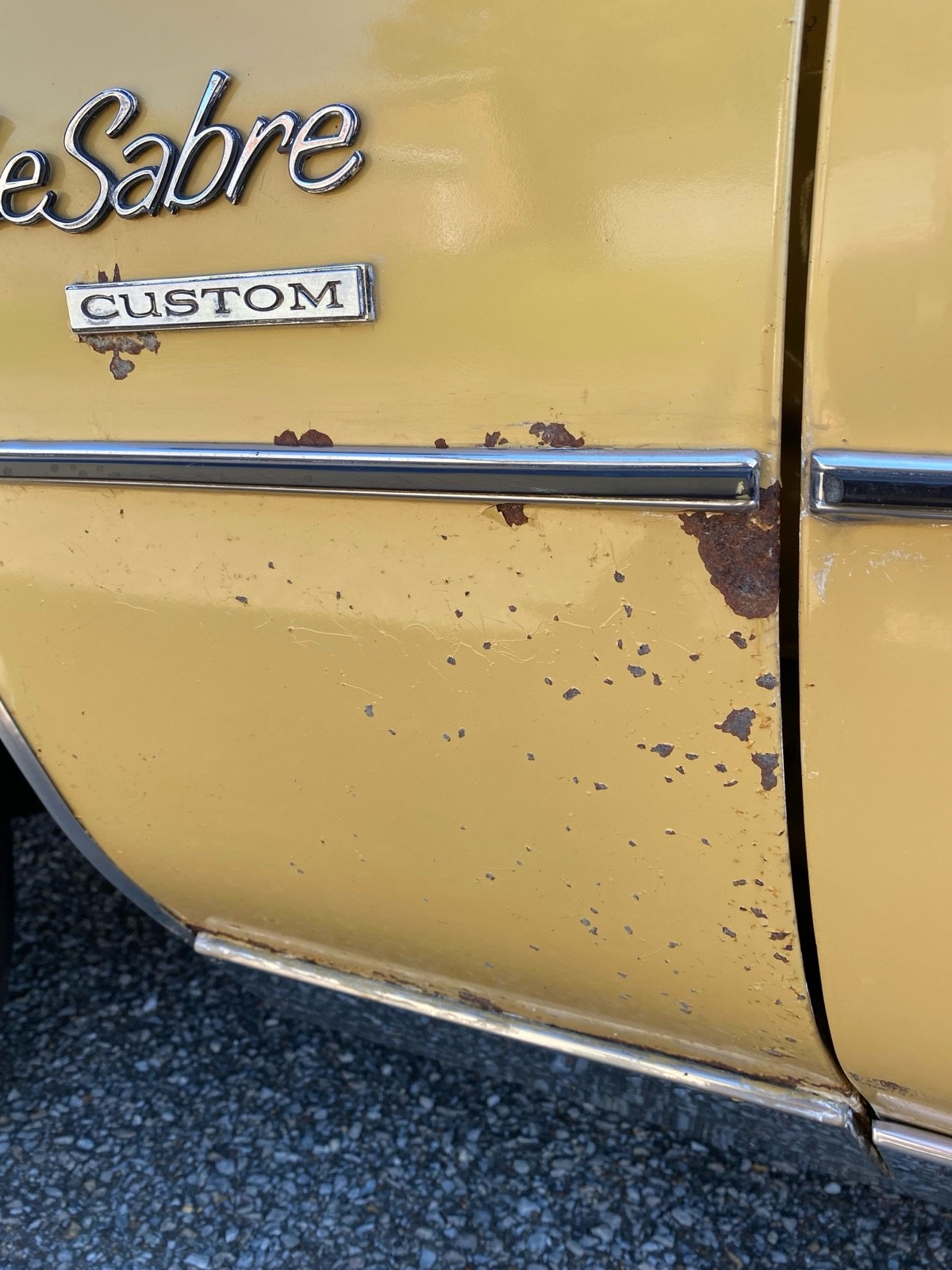 This 1973 Buick Le Sabre is an original. The owner has had it for 2 years. The vehicle is drivable and is mainly used for weekend drives. Vehicle Details 1973 Buick LeSabre · Coupe · Driven 19,140 miles 1973 Buick LeSabre Custom 2-Door Hardtop Coupe. Beautiful car to be over fifty years old, with 19,139 original miles - not a rollover. I’m the third owner. 350-4bbl Buick, automati, tilt, cruise, A/C. Absolutely beautiful interior that looks brand new, except for slight blemishes on front bench seat. Factory floor mats. Glass is perfect. Exterior is very nice and very solid overall but does have some cosmetic blemishes from elderly drivers. Trunk still has the original jack and spare tire, and vintage trunk liner. Car runs and drives beautifully. Everything works except the cruise control. The vacuum diaphragm has a tear in it otherwise it would work too. AC blows cold, AM radio works, lights and gauges work except the fuel gauge is on full all the time. New water pump, newer plugs and wires, four like new white wall tires on new chrome wheels. New front and back shocks. New back brakes. NIB car cover. $10,500 obo. |