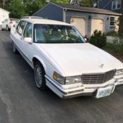 | This is a Cadillac Fleetwood with 7700 miles on it with white interior seats, hite wall tires, sunroof,and a fifth row tire on the back. This car has a silver grill on the front and a silver grill over the visor, t has a eight track player. This car just needs a little work and tender loving care. My asking price is $12,000 and my contact information is 216-240-2567 Ms.Bowman |