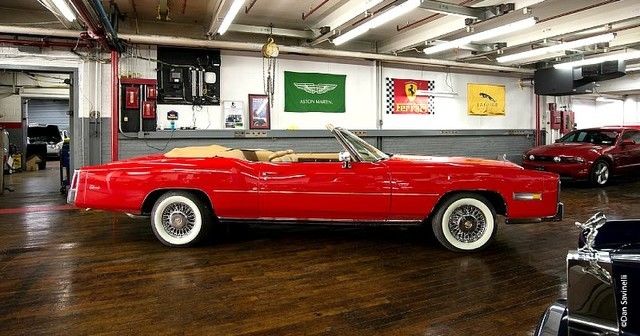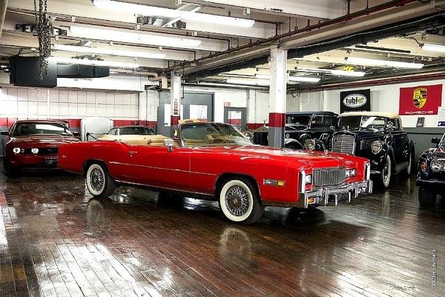 1976 Cadillac Eldorado "the last American convertible" The nameplate Eldorado is a contraction of two Spanish words that translate as "the gilded (i.e., olden) one" — and also refers to El Dorado, he mythical South American "Lost City of Gold" that fascinated Spanish explorers (The New York Times, hil Patton, ay 10, 002.) Last year convertible for this body Standard four wheel disc brakes 24-hour Weather Band radio option Black painted wheel cover detailing Custom Biarritz option (mid-year) Power passenger recliner option Manual driver recliner option Automatic door lock option 90-degree, verhead valve V-8. Cast iron block and head. Displacement 500 cu. in. (8.2 liters) Bore & stroke 4.300 x 4.304 in. Compression ratio 8.5:1 Brake horsepower 190 @ 3600 R.P.M. 215 @ 3600 R.P.M. Torque 360 lb.-ft. @ 2000 R.P.M. 400 lb.-ft. @ 2000 R.P.M. Main bearings Five Valve lifters Hydraulic valve lifters Fuel distribution 4 Bbl. Rochester M4ME Fuel Injection Please call, ext or email if you have any question, y cell is 203 947-5293 and email is john@blackhorsegarage.com