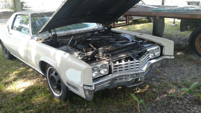 Classic 1967 Eldorado - "FULLY OPERATIONAL and DRIVEABLE needs and deserves a full restoration by a true Eldorado enthusiast. This original vintage highly optioned CALIFORNIA EDITION ELDORADO was assembled on May 7, 967 at the Fleetwood West Detroit Assembly plant in Michigan. The car was resold at one point by CasaDeCadillac in Sherman Oaks California. This vehicle still has the original fully functional high performance factory installed California A.I.R. Edition Rochester QuadraJet Gold Seal Model No.7037235 Carburetor and the California Edition Smog Pump. This highly option Eldorado is equipped with a fully functional vary rare GM factory installed Kelsey Hayes 4 piston caliper FRONT DISK BRAKES with the oversized 14" Bendix Power Booster and Master Cylinder,.. only 5% of the 1st Generation 1967 "E1" Eldorados had this rare braking system. This car is also equipped with the original factory air-ride leveling syste, .. CAR IS EXCELLENT RESTORATION CANDIDATE REQUIRING PAINT AND BODY WORK AND INTERIOR CONDITIONING. This is a factory original 43 Baroque Gold Metallic (22814) color car with No.440 Covert interior. The steel floor boards have been fully replaced at a cost of $3000,.. so she is on the way to restoration and needs completion by a true enthusiast. Car is being sold in order to re-capture garage space,.. I currently own seven (7) of these Eldorados and I need the space for a 1957 Eldorado Brougham I purchased. The vehicle is traceable as production sequence No.14205 out of 17930 Eldorado vehicles produced for the 67 model year. This 1967 Eldorado is a COMPLETE CAR including an operating Engine and Transmission and Braking system ENGINE VIDEO : https://youtu.be/4ygz_uZrMrk http://youtu.be/tf2R5Mt5gvA http://youtu.be/msiKQyMM3GY ENGINE: 429 Cubic Inch V-8 (340 Horsepower) 7.03 Liter Engine Maximum torque: 480 ft.-lbs. Bore and stroke: 4.13 x 4.0 Inches Compression ratio: 10.5:1 Carburetor: Rochester 7037235 Exhaust System: Dual Exhaust to Muffler, ne Outlet Pipe/Resonator from Muffler TRANSMISSION: Turbo Hydra-Matic, -Speed plus Torque Converter WHEELBASE: 120 Inches Length: 221 Inches Width: 80.0 Inches Height: 53.3 Inches Weight: 4,950 Pounds SUSPENSION: Front: Independent, nequal-length wishbones, oil springs, nti-sway bar Rear: Rigid axle, ingle-leaf springs, raction dampers, ir leveling STEERING: 2.75 Turns lock to lock Type: Recirculating ball Steering ratio: 16.3 inches Turning diameter: 41 Feet BRAKES: Front: 12.0 x 2.75 Inch Cast DISK (Very Rare) Rear: 12.0 x 2.0 Inch Cast Iron Drums Total Swept Area: 179.5 Sq. Inches CALL 7273647523 IF YOU HAVE ANY QUESTIONS OR TO RECEIVE MORE PHOTOS |
