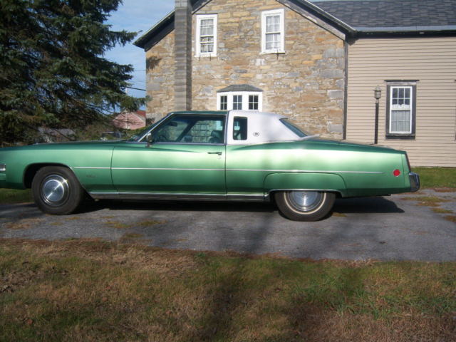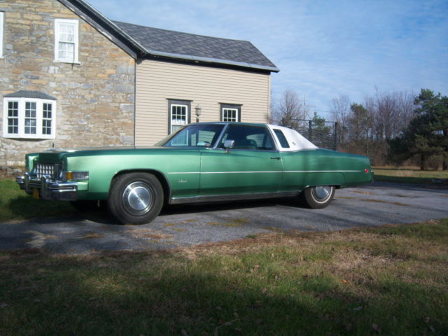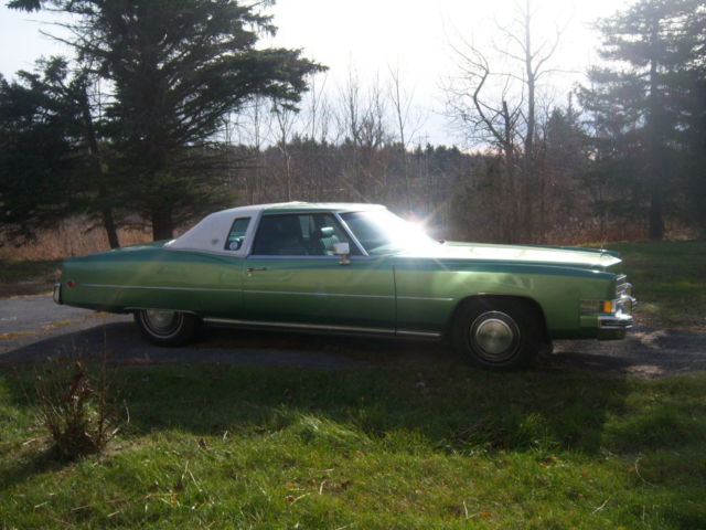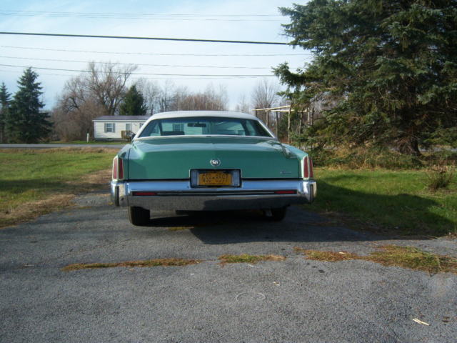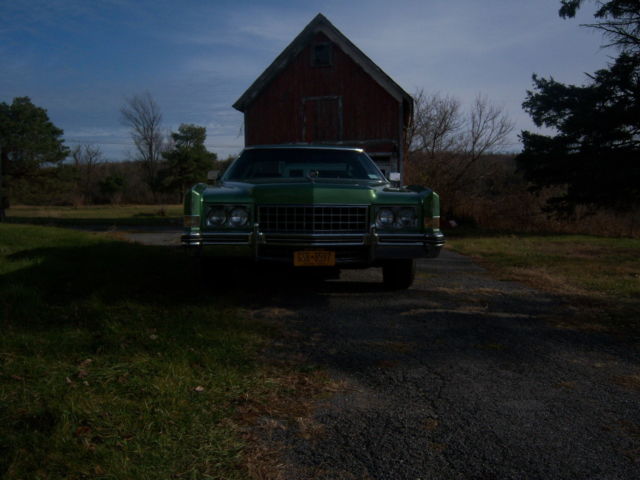 this is a very nice 1973 cadillac eldorado. i really am no car expert so please feel free to ask any questions. you can also look at the car in person. this car is in great condition. runs, rives, nd looks good. has the smooth and powerful 500 cubic inch engine and smooth shifting automatic transmission. odometer says 42000, ant say if its turned over or not but the car is very clean. paint is pretty nice with a few parking lot dings. all power options are working including nice a/c. power door locks stick sometimes. windows are fast. clock even works but when it sits needs to be reset. power seat works great. power antenna works with the switch, oesnt go all the way down when you turn off radio, ut does with switch. car has no rust, oes have small scratch on fender, will add a pic in the morning. top has some discoloration on the top. maybe some tar from trees stained it? not positive. tires are very nice but if i was to keep it i would upgrade to wide whites. interior is really nice. dash is crack free and no tears in seats or headliner. armrests have a couple cracks. car is plated and has been driven weekly this past summer. this car is very smooth on the road and really gets a ton of thumbs up. a very nice driver that is a pretty rare cadillac color. clean new york title.i am trying to describe the best i can but remember in is 42 years old and is not perfect. buyer is responsible for pickup and shipping. i will be there when your shipper arrives. buyer pays 500.00 paypal deposit within 48 hours of auction close. remainder to be paid within 7 days. all funds must clear before vehicle pickup. car is for sale locally so auction may end. On Dec-09-15 at 07:56:26 PST, eller added the following information:i am adding the picture of the scratch on the passenger fender just above the wheel. thanks