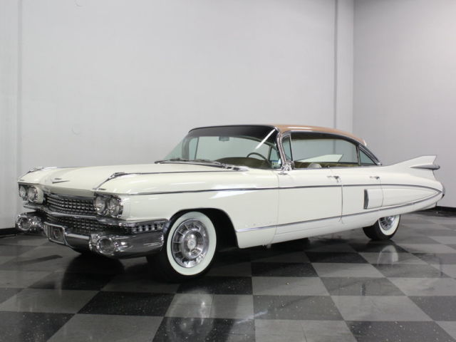This incredible 1959 Cadillac 60 Special spent much of its life in a museum, hich is probably why the all-original interior looks so incredible. Showing just over 50,000 original miles, oaded with options, nd still carrying the ultimate in '50s fins, his is the car for the guy who knows what style is.Dover White looks awesome on the massive Cadillac, hich stretches more than 19 feet long. It's most definitely a product of the anything-goes 1950s, nd there's simply nothing else that makes a statement like the fins on the back of this big sedan. A recent re-paint gives it a sparkling presentation with ultra-straight sheetmetal with no nasty surprises hiding underneath (it really is as straight as it looks), lthough the Gotham Gold roof may have been added at that time. Then again, he special order interior might suggest this is how it has always been. Either way, ll four doors fit well, nd since this is the desirable 4-door hardtop without pillars between the doors, t has a very sleek, inished look. All the chrome and stainless trim remains in excellent condition, oo, nd that's good news given the cost of chrome restoration, specially since that grille is made up of hundreds of separate little pieces. The Soft-Ray glass looks period perfect and is a nice touch on an air-conditioned car like this.The two-tone white leather and gold cloth interior is believed to be 100% original, nd the "SO" marking on the trim tag suggests that it was a special order. The cloth inserts are durable fabric with pleats and tufted buttons, lus the original arm rests in the center of the bench seats. The futuristic wrap-around instrument panel is pure jet-age styling and the original steering wheel is two-tone with a bit of chrome for an upscale feel. With a long list of options including power windows, power front seat, nd an AM radio, lus Vintage Air A/C that was very neatly integrated into the original dash, t's a pleasure to drive regardless of the weather. There's stretch-out room for everyone, articularly in back where accommodations like this are only found in stretch limos these days. And yes, he trunk is every bit as massive as you'd expect, ith plaid mats and what might be the original spare tire.Cadillac's 390 cubic inch V8 was among the most powerful engines on the market in 1959, nd moves all 19 feet of 60 Special with east. Like the exterior, t's probably been freshened but they stuck to the original recipe. There's Cadillac Blue paint on the block itself, stock air cleaner assembly, nd even that Vintage Air A/C compressor looks period-perfect, nice touch. Power steering and brakes make it easy to wheel around in parking lots (as long as you have a spotter!) and the Hydramatic 4-speed automatic transmission is about as durable as they come. A brand new dual exhaust system gives it a muscular hum that's entirely appropriate and those years in a museum were certainly kind to the undercarriage, hich remains in outstanding condition. 15-inch steel wheels with factory hubcaps and new 235/75/15 BFGoodrich Silvertown wide whitewall radials complete a very impressive package.A big, mpressive Cadillac with monstrous fins and a bit of style. First-class travel never looked this good. Call today! |