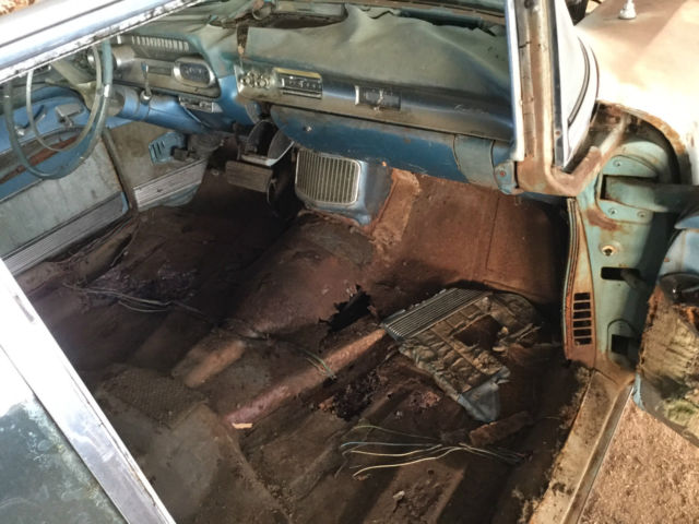 Complete ca, factory a/c electric seats and window. Driver side wingglass crank is broke. front floor have rusted thru . interior needs replaced . Head liner has 1 small tear. seats are all there. all chrome is there but the small thin ones along the rear fender are bent on the ridge. The ridge there is dented too. There's a silver dollar size rust only on the driverside by the back glass. It does come with theoriginal keys. Didnt see the spare tire or the jack though. The passenger side front light trim is bent but might be able to fix it .