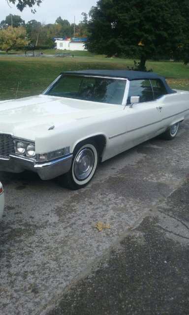 | Clean white Cadillac with new navy blue convertible top. Original Navy blue leather interior. CD player, 7 inch screens, with PlayStation 1 hooked up to the system, original Cadillac rims with 2in white walls, and all power. 317-506-4328Willie Chapman any questions feel free to contact |
