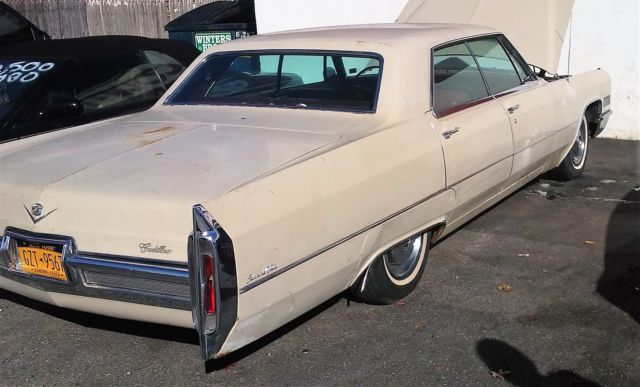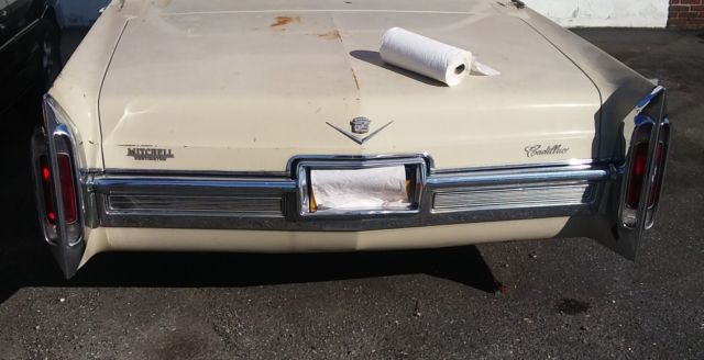 I am the car's second owner. I bought it from the estate of the original owner (Mitchell Cadillac/Olds - Huntington, NY).Car has surface rust and other rust in usual Cadillac places.Chrome around windows,vents etc is very good.Interior, headliner, carpet are all excellent which leads me to believe the59,600 miles is correct - I have spoken to the nephew or the original owner and he assures me that this is accurate.Car was last registered in 1988 and has been garaged at the house ever since until I purchased it last year.As a result of this long sleep the carburetor had to be rebuilt and the valve lifters clatter.I put marvel mystery oil in it and that has helped some but i have not run it enough to let it have its full efect.Gas tank will have to be cleaned from the stale gas; it is now running ona 2 1/2 gallon lawnmower tank.Please e-mail, text me or call me with any questions for more detailed information. Loren +1 516-991-7187 . Thanks for looking! |