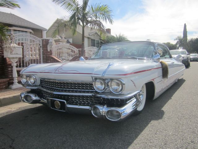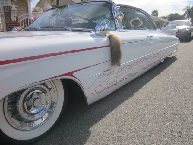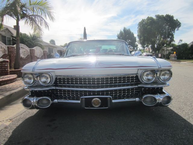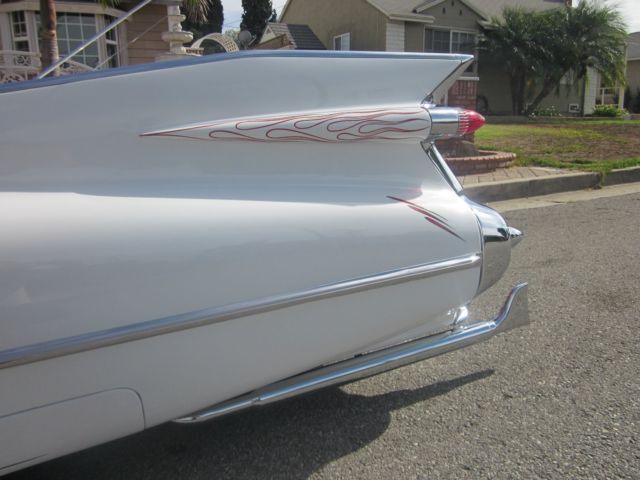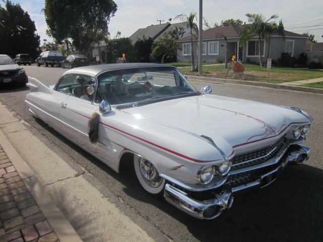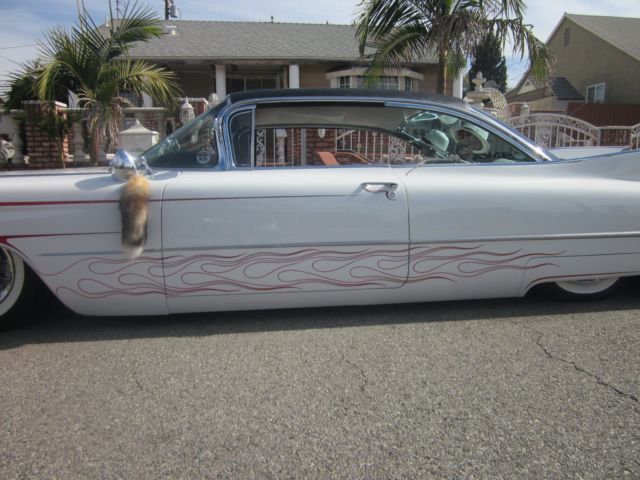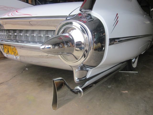 | very nice 59 caddy body and paint very good, power brakes,power steering, power windows air bags front and back, runs great wins at all car shows, new black top, tires call with more info on car 562 587-8086 cell thanks tom calif car clean under the car like the rest of the car. new mufflers bellflowers and fish tails, custom made sounds great. car has never seen rain all ways store in a garage. |