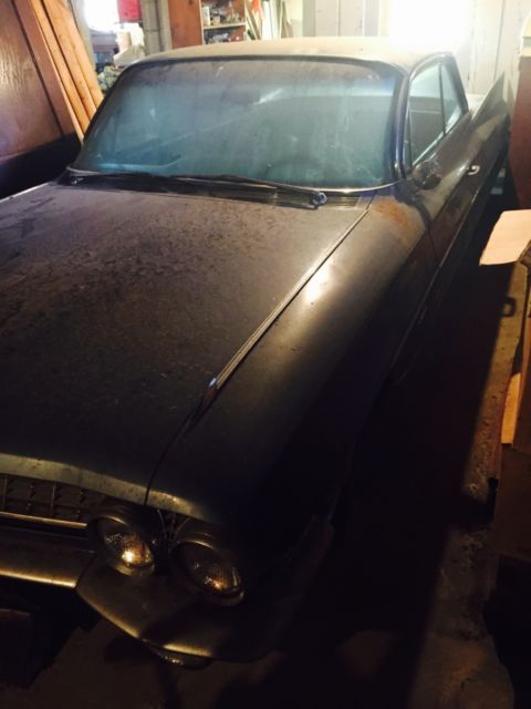 1961 Cadillac 2 Door – 20,251 Original Miles. My father purchased this car in 1974 from the original owner who kept it in a garage and did not drive it. Dad drove it even less making him the second owner of this garage queen. The car has not been started since about 1978 which was the last year it was licensed. It has sat in a heated “garage” if you will – in the basement of the house. House sits on hill with driveway entrance into basement. The photos tell the story. Layers of dust. One photo shows “rust” on driver’s side front fender but that appears to be rust from a leaking water pipe above. Interior and headliner are like new. Odometer is actual. Paint is actually in nice condition. Bumpers have minor pitting from normal oxidation. Tires are flat from sitting and are likely the original tires that came on the car. We will not attempt to start the car for fear of causing damage. I assure you it ran like new the last time it was started. Car is located in Toledo, Ohio. Being sold to settle estate. Seller will not ship – buyer pick up only.