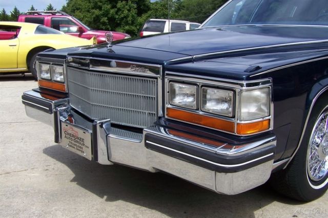 Check out this very sharp nice well documented pampered California/Georgia rock solid turn key rust free 59k org mile loaded Fleetwood Brougham pkg sedan! This is a very mint quality true survivor! Very few exist in this truly collector quality condtion and bet you will not fine a better freasher one! Its hard to beat a original unrestored rock solid car they are only org once folks and this car new in 1982 was close to 20k in 1982 dollars! Miles are exempt for year but history and condtion of this gem back up the 59k! It has very nice colors and nice equipment with super nice just about perfect org glove soft blue leather, nice Fleetwood wood trimed lined custom interior, very nice high luster clean paint and looks like original paint, dual power seats, factory electronic am/fm/cass, cold ac, tilt/cruise, nice correct wire wheels with match set of Michelins tires, smooth strong 4.1L fuel injected v8, automatic, full power, clean tidy engine bay, clean trunk with original spare, original owners manual/books/key codes wheel lock, org floor mats, org keys and much more! This car runs and drives and looks super nice and is very presentable! This vehicle is parked in our showroom it is that nice! Please call ahead to set up a time to check it out! The new owner should really like it!
