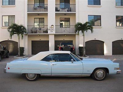 | CALL BRYAN 954 756 5187 1973 Cadillac Eldorado convertible with only 63. 00 ORIGINAL MILES. This is not a mistype. miles are original. A car that was well maintained and it shows and comes w/ extensive history. The car drives excellent and does not appear to have any mechanical issues. I personally took the car home and drove it for 2 days. 80mph on the highway was solid and smooth. Tight front end and super smooth suspension. Engine strong and transmission shifts smoothly. Even the power convertible top opens and closes with a flip of a switch. All the options I tried worked including power windows/power seats. etc etc. The paint appears 100% original which is unbelievable! But shows some superficial rust which we took pictures of. Mostly on the hood of the car. This is a PERFECT car to lightly restore to your specs. A solid bodyshop will easily take care of the rust and paint and you can make this baby as close to mint condition as you want. Its a good and healthy car that unfortunately has collected very minor rust in the usual spots typical of a car over 40 years old. I had a blast driving this car and can only imagine how much MORE fun it would be if somebody took a little time and TLC and made this car perfect! Interior is in very good condition with just average wear. All chrome trim is in excellent condition. There arent any missing pieces and everything appears solid and intact. This car has only had 2 previous owners. The last owner has owned it for the last 18 years and has extensive documentation. Notice the repair manuals which he took the time to make. and photographs (maybe 60) from when he originally purchased the car from the original owner 18 years ago. Comes with all books/manuals. 2 pairs of keys. and convertible top covers. Call Bryan for more info 954 756 5187. Can assist w/ nationwide shipping at lowest prices. See our website MiamiBeachCollection. com Thank you. |