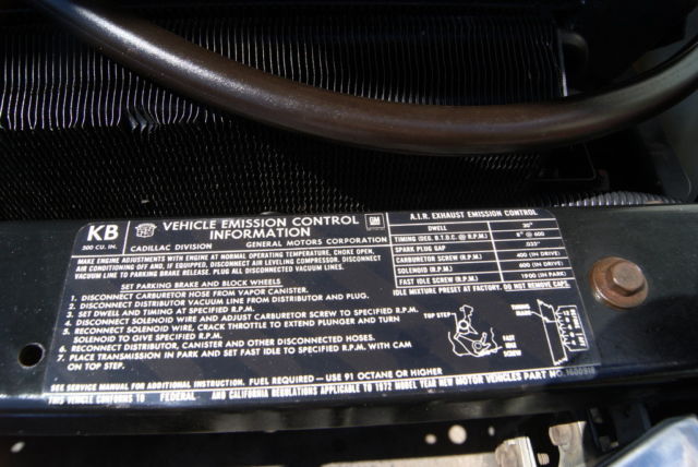 1972 Cadillac Eldorado 64,764 miles from new. One owner car from new until 2017. Collector owned. Second owner purchased from original owner's estate. Recently completed $4,000 service. Runs and drives great and all power options work 100% including 8-track cassette. Ice cold AC !!! Located in Central New Jersey. Title in hand ready for transfer. Original window sticker and Owners manual comes with the car. Sold new out of Franklin Cadillac in Cincinnati Ohio. Contact Dean at 848-459-7776 OVER 75 PHOTOS BELOW: Exterior: Interior: Engine bay and undercarriage: On Sep-16-17 at 07:13:48 PDT, seller added the following information: Original floor mats: |
