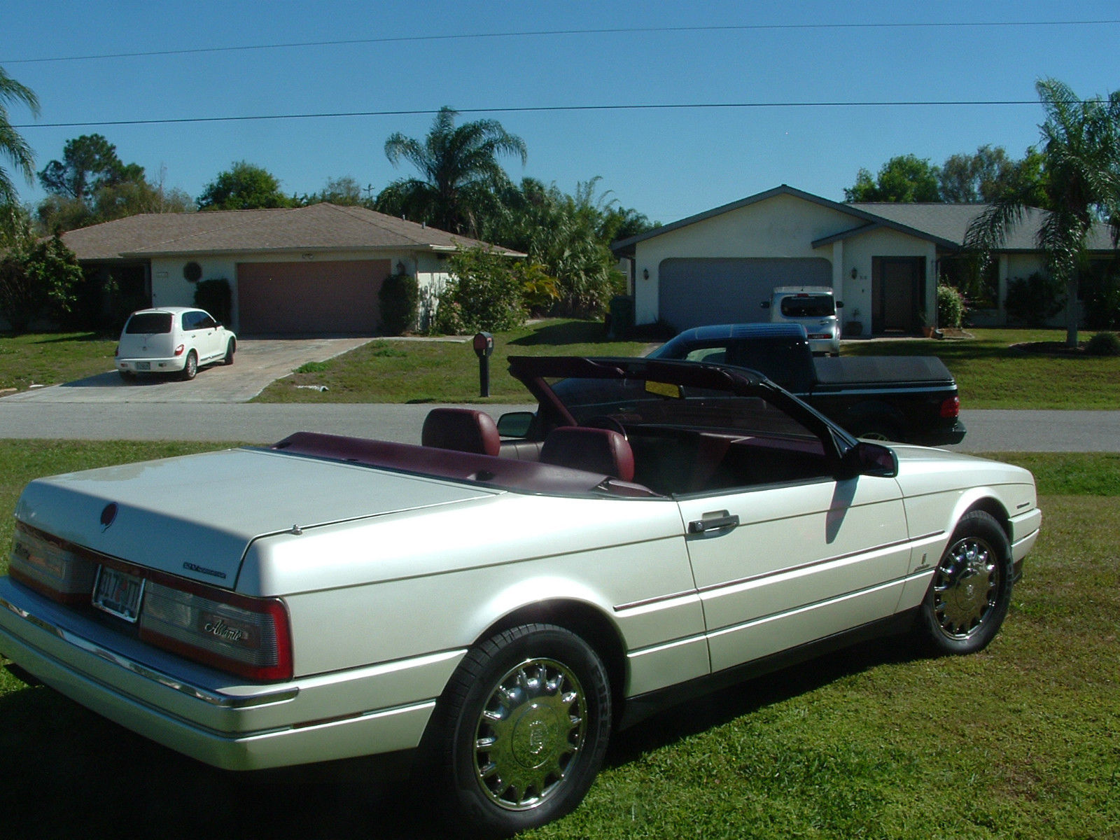 | BEAUTIFUL 1993 CADILLAC ALLANTE. 54k ORIGINAL MILES. NO OIL LEAKS. ABSOLUTELY NO PROBLEMS WITH DRIVETRAIN. NO NOTICEABLE WEAR IN INTERIOR. GORGEOUS RED LEATHER WITH RED CON VERITABLE TOP. CAR LOOKS & DRIVES LIKE NEW. ONLY YEAR WITH THE 4. 6 NORTHSTAR ENGINE. NEEDS A NEW TRUNK PULL DOWN MOTOR & TRUNK SUPPORTS. SOME MINOR WEAR ON CHROME WHEELS. |