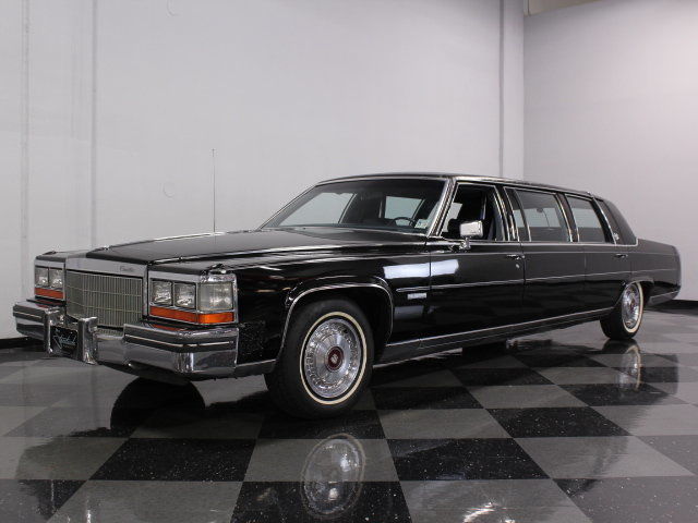 | Got a classic car to sell? We can Sell it! Call us Today! 1982 Cadillac DeVille Stock #1092-DFW 1982 Cadillac DeVille for Sale Charlotte Showroom 5400 West WT Harris Blvd Charlotte. NC 28269 Local/International: (704) 598-2130 Toll-Free: (866) 542-8392 Hours: Tues - Fri: 9AM - 6PM EST Sat: 9AM - 5PM EST Email: sales-cha@streetsideclassics. com Atlanta Showroom 213 Thornton Rd Lithia Springs. GA 30122 Local/International: (678) 279-1609 Toll-Free: (877) 367-1835 Hours: Tues - Fri: 9AM - 6PM EST Sat: 9AM - 5PM EST Email: sales-atl@streetsideclassics. com Dallas/Fort Worth Showroom 5400 Sandshell Dr Fort Worth. TX 76137 Local/International: (817) 764-8000 Toll-Free: (855) 877-2707 Hours: Tues - Fri: 9AM - 6PM CST Sat: 9AM - 5PM CST Email: sales-dfw@streetsideclassics. com VEHICLE SPECIFICATIONS ENGINE: 4. 1 Liter V8 BODY STYLE : Limousine TRANSMISSION: 4 Speed Automatic (200R-4) EXTERIOR COLOR: ODOMETER READING: 47867 INTERIOR COLOR : Blue VEHICLE FEATURES & OPTIONS Air Conditioning. AM/FM Radio. Cassette Player. Cloth Interior. Cruise Control. Defrost. Front Disc Brakes. Fuel Injection. Heat. Power Brakes. Power Locks. Power Steering. Power Windows. Seatbelts-Front. Seatbelts-Rear. Tilt Wheel. Vinyl Interior SELLER REMARKS Three or four times a week. we get a request from a young bride or groom to supply an old car for their upcoming wedding. Of course. we can't usually accommodate such requests but the new owner of this 1982 Cadillac Fleetwood limousine would be off to a great start in a new business with this car. Truthfully. there's still nothing that says upscale elegance quite like one of these big Fleetwoods. especially in black. This car shows just 47. 67 original miles. so you know it isn't one of those ragged-out fleet cars. Instead. it seems to have led a pretty easy life and spent many years in a personal collection where it wasn't used for professional duties. And we have to say that it's held up quite well. especially for a black car. It's a six door limousine. but the middle doors are very cleverly disguised and only the passenger door is operational (they didn't want passengers getting out on the street side. so it's a safety thing). so very few people will even notice. The black paint still looks sleek and elegant and the padded roof over that razor-edged roofline makes it look very presidential in profile. The typical issues on these cars are the urethane fillers at the ends of the fenders. and these are starting to show their age. but that's really the only place where this car looks 33 years old. Even the chrome and taillight lenses are in excellent order and the windows have a light tint that's appropriate for a limousine. The blue interior features durable leather up front for the driver and plush velour in back. as it has always been for limousines since the very earliest days of luxury motoring. All of the upholstery is in excellent condition. befitting a car with so few miles. and the carpets are plush to help control noise inside. Folding jump seats for middle passengers makes this a true 7-passenger vehicle. perfect for wedding parties. and if you don't need them. there's truly massive legroom in back. Things like automatic climate control. cruise control. power windows. and a tilt column make it comfortable for driver and passengers alike. and from behind the wheel. you don't feel like you're maneuvering 26 feet of automobile. And. of course. there's a massive trunk for luggage. making this a great car for moving folks around with all their stuff. Cadillac's HT4100 4. 1 liter V8 wasn't a powerhouse. but it's incredibly smooth and unobtrusive. which is really what you want from a limousine. It glides away from rest without vibration and cruises serenely at highway speeds with only a faint whisper of the wind rushing past the windows. It's well maintained under the hood and is completely stock save for an R134a refrigerant upgrade for the A/C. Obviously things like power steering and brakes are standard equipment and a 2004R 4-speed automatic overdrive transmission makes it a comfortable highway cruiser. As I said. the suspension and undercarriage look like they've been used but properly maintained and the elegant full wheel covers and 215/75/15 whitewall radials give it the right formal look. This is probably the most car for the dollar anywhere in the world. costing less than $500 per foot. Long black Cadillacs will always be in style. and this one represents awesome earning potential for the right person. Call today! 1982 Cadillac DeVille for Sale 1982 Cadillac DeVille for Sale Stock # 1092-DFW Charlotte Showroom 5400 West WT Harris Blvd Charlotte. NC 28269 Local/International: (704) 598-2130 Toll-Free: (866) 542-8392 Hours: Tues - Fri: 9AM - 6PM EST Sat: 9AM - 5PM EST Email: sales-cha@streetsideclassics. com Atlanta Showroom 213 Thornton Rd Lithia Springs. GA 30122 Local/International: (678) 279-1609 Toll-Free: (877) 367-1835 Hours: Tues - Fri: 9AM - 6PM EST Sat: 9AM - 5PM EST Email: sales-atl@streetsideclassics. com Dallas/Fort Worth Showroom 5400 Sandshell Dr Fort Worth. TX 76137 Local/International: (817) 764-8000 Toll-Free: (855) 877-2707 Hours: Tues - Fri: 9AM - 6PM CST Sat: 9AM - 5PM CST Email: sales-dfw@streetsideclassics. com DISCLAIMER This site and all advertising information may be updated without notice whenever new information is obtained and may contain mistakes and inaccuracies. Information is provided to the best of our knowledge and that of the owners of the vehicles. and we make no warranty or representation regarding the accuracy. truth. or reliability of such information. We cannot be responsible for any errors. omissions. or inaccuracies contained in information provided by third parties. Streetside Classics is not an expert in the construction. engineering. finishes. materials. and componentry of every single vehicle we sell. It is the responsibility of the buyer to either inspect the vehicle personally or via a 3rd party. to ensure sati