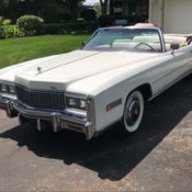 For sale a very nice useable Cadillac Eldorado Convertible. 1976 last year. Dual power seats, refurbished - new leather sewn in, new dye to match original. Power antenna works (miracle of miracles) ! Has hard boot in matching paint in trunk bag. AC works. New Hankook tires 235/75 R15 in the last few months, less than 500 miles. What does this car need – eventually a new top – this one is serviceable, but aging. Look at the pics – judge for yourself. White exterior, blue & white two-tone interior - very sharp. Offered with no reserve at $125 starting price to cover cost of listing. This is a used vehicle, and is sold as is, where is. I am a private individual selling from my collection which needs whittling down. I had almost 20 cars, now selling the last few – saved the best for last. |