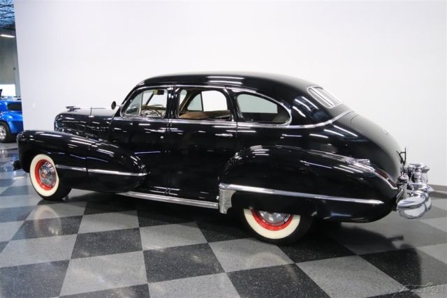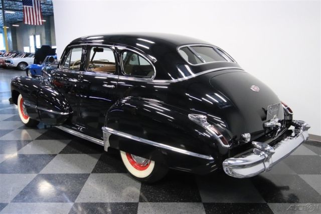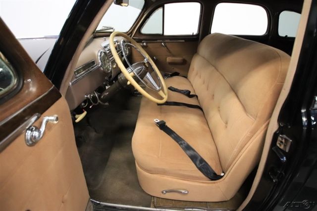 Rarely do you get an opportunity at any car from 1942. So when it's a big, glossy, and highly original Cadillac Series 63 sedan, you know this is something quite special. The Series 63 will always hold an interesting place for Caddy fans. It was likely born out of the ashes of LaSalle, and with USA's involvement in WWII, 1942 was a very limited model year. More than just history, you love this because it's a true classic Cadillac. The massive grille makes a bold statement as it follows the contours created by the tall hood and long fenders. The wraparound bumpers shine to a level that it makes sure this sedan leaves a lasting impression. And the details are even right, too, like the factory wheel covers and the taillight housings that hint at the tailfin era that was coming after the war. With all of this presenting so complete and bright, this Cadillac has never lost its regal image. The final piece to this attractive package is the glossy black. This is the result of an older respray, so some might get the impression you have an amazing survivor - and we won't tell your secret. Luxury in a '40s car was all about going broad - broad doors, broad space, and broadcloth. The interior looks and feels like it was updated during the car's lifetime, but the button-top pattern on the seats and doors are quite correct for a luxury machine of the day. The sleek dash is an Art Deco masterpiece with a very symmetrical look and auxiliary readouts cleverly hidden in a narrow band in front of the driver. The AM radio is still on display, and the heater works properly for those times you want to be first to the car show. It's an overall authentic feeling that you'll enjoy right down to the steering wheel with classic Cadillac horn cap. Cadillac's 346 cubic-inch V8 engine was the icon of the industry. This big motor that carried sixty percent more displacement than what was available at Chevrolet. This kind of history makes it extra special to have the correct V8 under the hood today. More than just the motor, the whole engine bay appears to be highly original. It includes nice green flat heads, an original-style air cleaner, and all the major accessories intact. This V8 makes plenty of torque, and when combined with the column-shifted three-speed manual transmission, this classic Caddy still knows how to cruise with comfort. Complete with restoration photos and service manuals, this Series 63 sedan is a rare treat for true classic car fans. So if you want to be the center of attention, hurry up and call today!