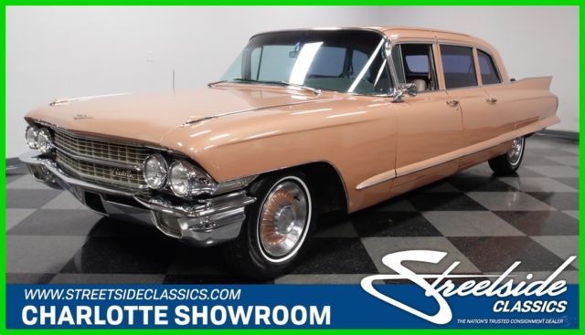 Classic luxury fans know to pay attention when a car like this 1962 Cadillac Fleetwood 75 sedan becomes available. Reserved only for the top elite, these always command respect. So to find one so complete and with a few nice modern upgrades makes this a true upper-echelon stunner. You instantly knew someone special was arriving when you saw one of these long-wheelbase Caddys pulling up. These Series 75 sedans had a distinct look and tall roof line that instantly conveyed opulence. In fact, the same money at the Chevy dealership in '62 could have bought a top-of-the-line trio with an Impala wagon, sport coupe, and convertible - all with V8s. And there would have been enough left over to fill the gas tank a few times! Because of this pricing level, these Fleetwoods were sold as limousines. That means a sedan like this is the rarest Cadillac they sold with less than 700 examples made in 1962. So just imagine how many have survived to be this complete over 55 years later! The wide grille, form-fitting bumpers, rear fender skirts, and iconic tailfins - it all shows you this example has been treated with care. The original black has been traded in a while ago. But it's hard to tell it this long sedan was anything but Woodrose Pink all its life, because all the details were covered - from the full-length side trim to the slats in the factory wheel covers. And let's face it, who doesn't love a premium pink Cadillac? The consignor states that $13k was invested in updating the interior, and we think it was money well spent. The gray leather seats with exterior-matching inserts kick off a fully coordinated package with the door panels, carpeting, headliner, trunk, and dash. The front gets plush power adjustable bucket seats with an armrest and cup holder center console. There's even an AM/FM/CD/XM stereo with modern Bluetooth. But even with all these upgrades, nothing really beats the view from Cadillac's classic skinny dual spoke steering wheel. It gives you a terrific view of everything from the ultra-wide speedometer, to the power window switches at the base of the wraparound windshield. But in a car like this, the rear is just as important as the front. There is a limousine level of legroom, and it even has great vintage elements like the provisions for rear air conditioning. But just like the front seats, there's also modern conveniences, too. The custom storage cabinet, cup holders, and overhead DVD player mean this classic Caddy is still ready for a comfy road trip. Cadillac's 390 cubic-inch motor fills this engine bay properly with big power. This V8 looks fantastically well presented with the blue block and valve covers hiding under the tidy black belts, hoses, and air grabber. The consignor states that the motor was rebuilt less than 700 miles ago, and the way it fires up with ease backs that up nicely. With an advertised 325 horsepower, it has the kind of legs to be strong around town and cruise at 70 MPH on the highway. Plus, with a Hydramatic transmission, new power brake booster, new rear air shocks, new universal joints, and power steering this has the right features to continue the Series 75 Fleetwood's tradition of opulence. Complete with build receipts, this is an exceptionally rare classic that we know won't stay available for long. So if you love the best Caddys, don't miss this deal. Call now!