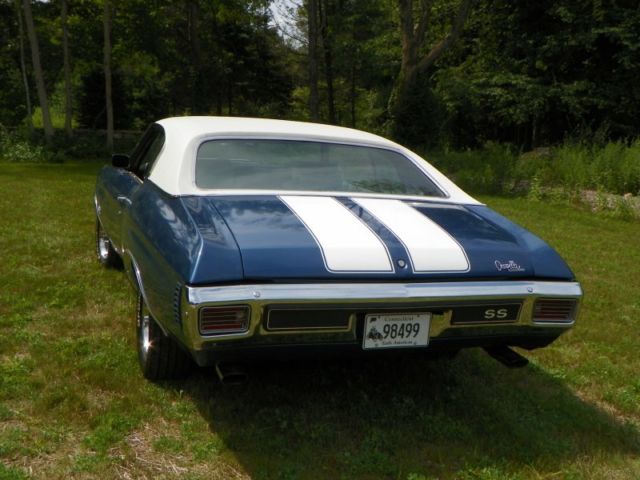 | Steve 203 554 2990 131 Whiting St. Plainville Connecticut 06062 • 1970 Chevrolet CHEVELLE IM Classics Contact International Motorcar Classics 131 Whiting St. Plainville Connecticut 06062 View Map Ask for:Steve Primary Phone:203 554 2990 Contact: •Contact Us Vehicle Information VIN: 1363701548871 Stock: 01548871 Mileage: 5 Color: FATHOM BLUE Trans: M22 4 SPEED Engine: 454 C. I. LS5 MPG: Drivetrain: Description 1970 CHEVVELLE SS454 4 SPEED ROTISSERIE RESTORATION. IM CLASSICS IS PLEASED TO PRESENT THIS 1970 CHEVROLET CHEVELLE SS454 LS5 4 SPEED. THIS IS A REAL Z15 (SS454) FRESH OFF THE ROTISSERIE AND DRIVEN LESS THAN 5 MILES. THE ENTIRE POWER TRAIN HAS BEEN REBUILT AS WELL. FINISHED IN ITS ORIGINAL COLORS. FATHOM BLUE WITH IVORY INTERIOR. WHITE STRIPES AND A WHITE VINYL TOP. IT IS ONE OF THE MOST SOUGHT AFTER COLOR COMBINATIONS EVER BUILT. NUMBERS BREAKDOWNVIN 13637015488711 CHEVROLET36 MALIBU 8 CYLINDER37 2 DOOR SPORT COUPE0 19701 OSHAWA. ONTARIO. CANADA548871 SEQUENTIAL PRODUCTION NUMBERCOWL TAGST70 197013637 MALIBU 8 CYLINDER 2 DOOR SPORT COUPEOS555121 OSHAWA. ONTARIO FISHER BODY UNIT #TRIM 791 IVORY VINYL BUCKET SEATS28C FATHOM BLUE3C MARCH 3RD WEEKD55 CENTER CONSOLEC50 REAR WINDOW DEFROSTERUM1 STEREO TAPE W/ AM RADIOZ15 SS454 PACKAGEC08 VINYL TOPA51 STRATO BUCKET SEATSM22 MUNCIE 4 SPEED TRANSMISSIONENGINE. TRANSMISSION. REARENGINE 454 C. I. LS5 360 H. P CASTING # 3969854TRANSMISSION M22 4 SPEEDREAR 3. 73 12 BOLT POSITRACTION Options and Standard Features Options A01 Glass Tinted All Windows A51 Seat: Front Bucket B22 Door Trim Pad Emblem B93 Molding Chrome Door Edge B96 Wheel Opening Molding C08 Exterior Soft Trim Roof Cover C50 Rear Window Defogger Blower Type D55 Front Compartment Floor Console D88 Striping Body F41 Suspension Firm Ride And Handling Gy2 Rear Axle 3. 31 Ratio G80 Rear Axle Positraction (Limited Slip Differential) Jl2 Brakes Disc Front Single Piston Caliper J50 Brakes Vacuum Power Ls5 Engine 454 Cid 4 Bbl Carb Hi Perf V8 M22 Transmission 4 Speed Manual Heavy Duty Close Ratio N40 Power Steering T60 Heavy Duty Battery Um1 Am Radio And Tape Player U14 Instrument Panel Guages Tachometer And Clock U76 Windshield Antenna Zl2 Special Ducted Hood Air Induction System Z15 Ss Package Rally Wheels Hurst Shifter Vintage Vehicle Services (Gm Canada) Report Basic Information VIN Number: 1363701548871 Stock Number: 01548871 Model Year: 1970 Make: Chevrolet Model: CHEVELLE Vehicle Trim: SS454 Vehicle Type: 2 DOOR COUPE Exterior Color: FATHOM BLUE Interior Color: IVORY Engine Engine Description: 454 C. I. LS5 DriveTrain Transmission: M22 4 SPEED •Directions to Dealer •Contact Us Terms Placing a Bid: Your bid constitutes a legally binding contract to purchase this vehicle. Please do not bid if you're not seriously interested or financially able to purchase this vehicle. Please read eBay's User AgreementInternational Motorcar Classics reserves the right to. Obtain and verify the registered information of all users who bid on this auction. Cancel any and all bids at our discretion. or end the auction early if necessary. Bidders Age: You must be 18 years of age or older to Bid. Special eBay Bid Retraction Rules: Please read eBay's "Retracting a Bid" If you place a bid before the last 12-hour period of the auction: You may retract that bid before that last 12-hour period but only for exceptional circumstances. You will not be allowed to retract that bid during the last 12-hour period of the auction. If you place a bid during the last 12-hour period of the auction: You will be allowed to retract the bid for exceptional circumstances but only if you do so within one hour after placing the bid. Funds & Financing: For help in arranging for a Pre-Approved loan or for any questions please e-mail or phone Steve at203 554 2990 prior to bidding. Buyers Inspection: International Motorcar Classics has done our best to disclose all information known about this vehicle for auction. International Motorcar Classics welcomes a buyers inspection. If you plan to have a buyers inspection. please make sure you inspect the vehicle prior to the auction ending. Inspection fees if any are Buyers responsibility. Representations and Warranties made by seller: This vehicle is being sold "as is". Manufacturer's warranties may still apply. Extended warranty may be available. e-mail or phone Steve at 203 554 2990 for details. No representations or warranties are made by seller. nor are any representations or warranties relied upon by bidders in making bids. Taxes and Registration fees: Out of state buyers are responsible for all state. county. city taxes and fees. as well as title service fees in the state that the vehicle will be registered. All taxes and fees must be paid in full in order for vehicle to be titled and registered. Title Information: Vehicles titles may be held by banks or lenders as collateral for loans. In many cases there is a delay in receiving the original instruments up to 21 days from the time we pay a vehicle off. While we usually have all titles in our possession at closing. there are occasions where we may be waiting for them to arrive. If payment is made by cashier's or personal checks we will hold all titles for 10 days or until funds have cleared. Shipping & Delivery: All shipping charges are buyer's responsibility. International Motorcar Classics will help with shipping arrangements but will not be responsible in any way for claims arising from shipping damage!Licensed Carriers are generally insured for $3. 00. 00. 00. We assume no responsibility for damages incurred after the vehicle leaves our showroom. All shipping arrangements are provided by International Motorcar Classics as a courtesy. We are not affiliated with any carrier. Any claims or other communication regarding shipment of vehicles will be between you and the shipper. not with International Motorcar Classics. The amount of time it takes for delivery is dependent on the carrier. but is generally 7-14 days from the date