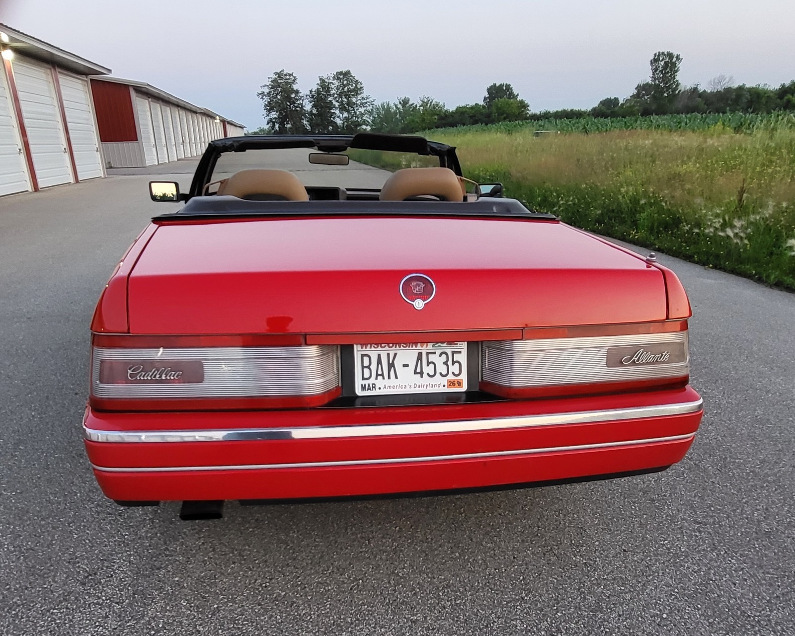 This 1988 Cadillac Allante is a genuine original. The luxurious red vehicle is mainly used for weekend drives and is in excellent running condition. With only 79,595 miles on the odometer, this Cadillac Allante offers a unique and classic driving experience for its next owner. Vehicle Details With a total of only 2,569 units produced in 1988, This Allante is 1 of 873 units with red exterior color that were produced for 1988. Cadillac Allante was manufactured 1987-1993 for a limited total of 21,430 crafted over the seven year production. Cadillac Allante's body were built in Turin Italy by PininFarina and flown to Detroit by jet to be fitted to the Cadillac Allante chassis. The two seat luxury cadillac roadster had many features ahead of its time. The Allanté is considered a rare and collectible car. Front Wheel Drive ABS brakes 4.1 Liter Transverse-Mounted V8 engine. 4 speed automatic with overdrive 15" Aluminum Alloy wheels power windows, power locks, cruise control, AM/FM/Cassette radio, A/C. Tan/Saddle color interior with Italian leather ten-way power Recaro seats. LCD instrument panel. This Cadillac has both the soft top (black canvas with glass window) and removable hardtop. |
