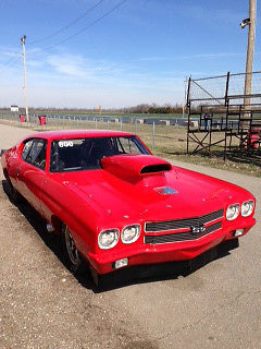DRAG CAR does not have a title . ut does have original vin plate on dash! "title available if needed" This would make a very fast street car with a little work such as turn signals and headlights. rear taillights/brake lights work as do the front fog lights1970 Red Chevelle viper red with light metallic flake ready to go super gas. Built by Holzman Race Cars in Wichita. KSWeight: 2650 lbsFord 9” housing with 4 link. Moser aluminum center section 40 spleen gun drilled axles 4:30 gearRound tube Chrome Moly FrameAll strange front end with rack & pinionNew BatteryFunny Car CagePowder coated framefiberglass front end565 Dart Block. Stinnet built 35 passes on engine and transmissionBrodix CNC Ported Heads 919 HP. have dyno sheets 8. 64 seconds. 159 in a quarter mile. certified for 7 seconds Hoosier front and rear. weld front wheels. new front tires. 33/16-15 NEW rear tires Strange adjustable shocks and disc brakesSingle parachute. wheelie bars Auto meter gauges (oil pressure. ater temp. transmission temp vacuum and tach) K&N Air cleaner Alcohol fuel injected with a Ron’s terminator Moroso vacumm. water pump and oil acummulatorSpecial order Moroso oil pan Electric fan Transmission cooler Power Glide Transmission. standard case. super pump Hurst electric shifter-trans brake and line lock for burnout MSD Ignition and crank triggerDedenbear delay box ATI 9” converter Aluminum radiator Removable fiberglass front end. metal doors removableAppraised at $79. 00. rear fender have been raised 3 inches & moved back 3 inches to add to the wheelbase Questions about the car you can call Holzman Race Cars & talk to chad Holzman1-316-684-3177I can provide a video of car or any additional pics upon request