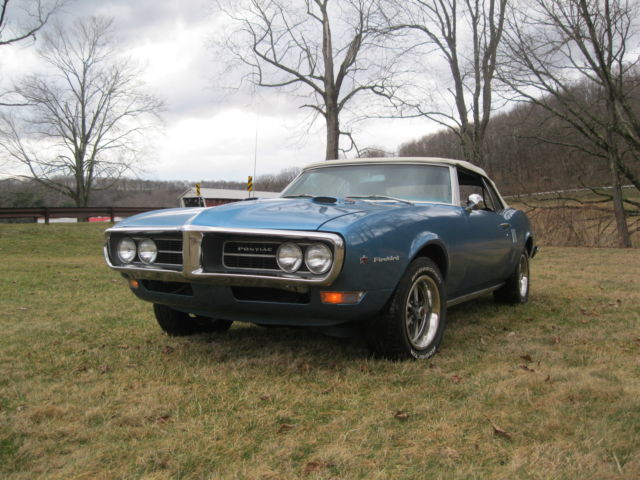 | 1968 Firebird Convertible. I purchased this car at an Estate Sale in Pennsylvania from a retired psychologist. She purchased the car in Missouri and had owned it since 1982. I purchased and will include with the car the history report from PHS services. The car was built June. 11. 1968 and left the factory Alpine Blue with Teal Interior and an Ivory White Top. As noticed by the VIN Number the car started out as Firebird Sprint Model with a OHC 6 Cyl 4 BBL. Other options included a Four Speed Manual Fully Synchronized Floor Shift . Push Button AM Radio. Door Edge Guards. eluxe Wheel Discs. Console. Floor Mat. Front and Rear. F70 X 14 White. Wide Oval Tires and a 3. 55 Rear End. The car currently houses Pontiac 400 Motor. Other than the motor and a 400 hood put on and the addition of Pontiac rally wheels. the car appears to be original. It has had a repaint and looks good in photos but the quality of the finish work is not show quality. There are some areas of discoloration. dirt and other imperfections. All of the panels line up well and appear to be factory. Some work has been done to the front lower quarters and lower front fenders. Nothing major. Floor and trunk pan are clean and rust free. The manual top is good and stain and tear free. All windows are good including the rear plastic. Bumpers are straight and rust free but the front has a couple of small holes for an unknown reason. All four tires and wheels match with good tread life left. The interior is nice and clean with fading only on the seat belts. I believe the door panels are original as the drivers side does show minimal wear and discoloration. Someone mounted a Pioneer radio on the front of the console and there are two small gauges mounted in the glove box. A Grant steering wheel was installed . the original blue wheel. door edge guards and a boot cover will remain with the car when it is sold. The car starts. runs. drives. steers and stops good. No smoke or leaks. Being owned by an older female would indicate a car that was well maintained and serviced. Her husband. also deceased. was a retired fireman from California. Their home and garage was well kept. This is not a "rare" ram air car or even a high output factory installed 400 edition Firebird. It is a very solid well preserved first edition example of GM's pony car that can be yours at auction. Buy it. drive it and enjoy it. As with any purchase I recommend potential buyers ( bidders) come and take a look at the car or have someone look it over for them. If your feedback is less than five do not bid with out contacting me first. I will cancel your bid. Buyer is responsible for all shipping and transporting costs. A $500 deposit is required within 48 hours of auction end and complete payment must be made before the car leaves. I don't sell cars for a living and don't need the hassle of immature bidders. The car is not listed locally or advertised for sale anywhere else and the auction will not end early. Good luck and happy bidding! |
