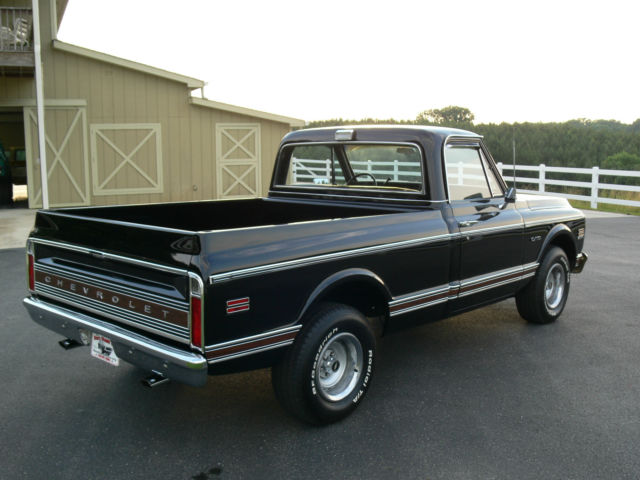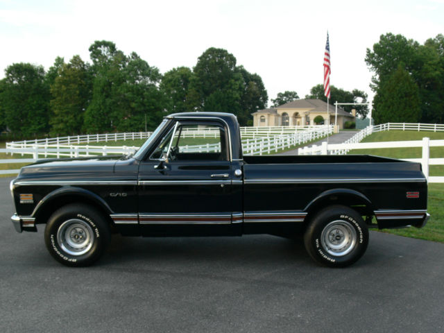 THIS BEAUTIFULLY RESTORED 1969 SWB CHEVROLET TRUCK IS READY TO DRIVE ANYWHERE AND SHOW... THE BLACK BASE COAT CLEAR COAT IS SHOW QUALITY AND THE BODYCARRIES IT VERY WELL. THE TRUCK IS EQUIPED WITH POWER STEERING, POWER DISC BRAKES, VERY COLD FACTORY AIR CONDITIONING, TILT WHEEL AND FACTORY TACK. THE MOTOR IS A NEW GM 350CID/300HP ENGINE WITH LESS THAN 200 MILES. INTERIOR IS A BLACK DELUX BENCH SEAT, nbsp;DOOR PANELS AND HEAD LINER. SHE RIDES ON 15" TRUCK RALLEYS WITH A NEW SET OF BF GOOD RICH TIRES. FEATURES A GREAT SOUND SYSTEM WITH CD PLAYER. NOTHING SPARED ON MAKING THIS TRUCK ONE OF THE BEST LOOKING AND DRIVING CHEVY TRUCKS IN THE COUNTRY. IF YOU ARE LOOKING FOR A LATE 60'S EARLY 70'S CHEVY TRUCK THEN PLEASE DON'T MISSTHIS ONE.. IT IS LOCATED IN THE CHATTANOOGA TENNESSEE AREA AND IS READY FOR IMMEDIATE DELIVERY. JUST CALL SAM BISHOP AT 770-722-7531 TO ARRANGE TO SEE AND DRIVE THIS BEAUTY. FINANCING CAN BE ARRANGED AND TRADES MAY BE CONSIDERED. PLEASE CHECK MY OTHER CHEVROLET LISTINGS. On Jun-12-15 at 05:12:12 PDT, eller added the following information: FACTORY TACH AND GOODRICH TIRES |