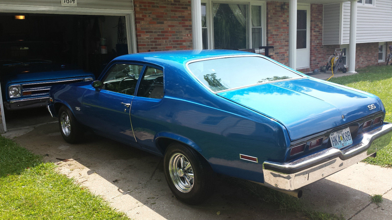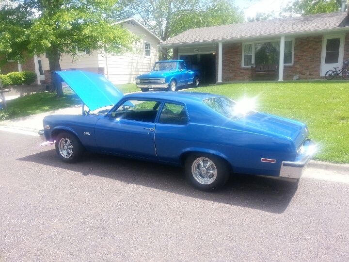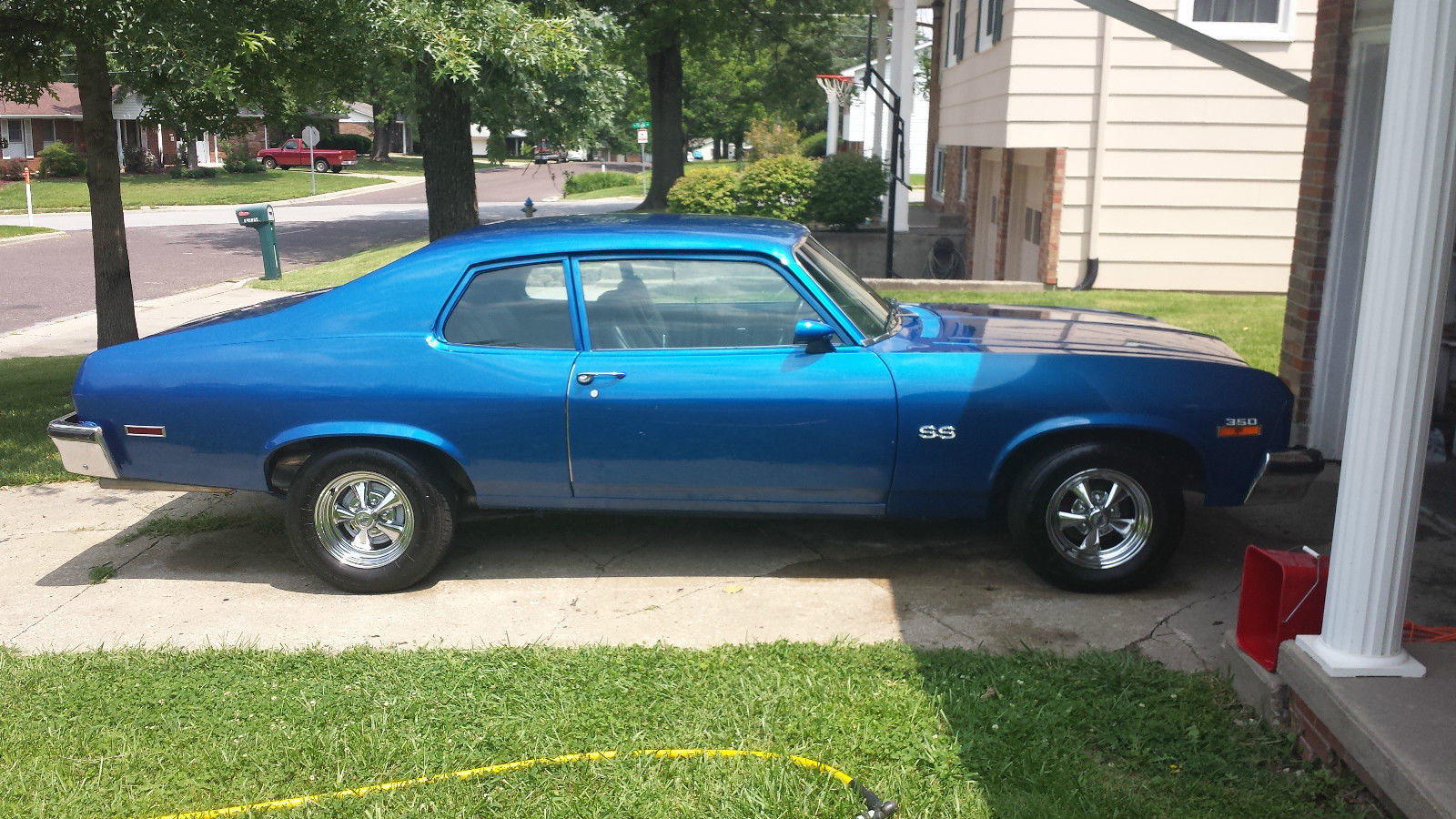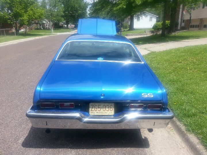 | Nice 1973 Chevy Nova SS. Trunk not a hatchback. Nice Blue paint with a few minor scratches and chips. NO RUST!!!! Newer tires and Cragar SS wheels. Newer stainless exhaust with glass packs. Has sub frame connectors. Motor: 350 (. 030 over) 010 block. 2 bolt main. Weiland intake. New Edelbrock 600 cfm carb. lunati II cam. New alternator. starter. water pump. temp sensor. thermostat. radiator cap. and power steering pump. The motor is somewhere between 325 - 350 HP. The engine has about 3000+ miles (the speedo does not work. I have a new cable for it just have not installed it yet. ) Also the dash light do not work. The tach. oil pressure. alternator. nbsp;temp and fuel gauages all work fine. Transmission;Muncie 4 speed. Reciently gone through and had 3rd gear replaced. Rear end is a 308 single track. Has new air shocks. and shackle kit. Interior:Black buckets in excellent condition. Nice black carpet. Door pannels are nice but do have a few small cracks. The dash has a small crack about the size of a quarter. New Stereo with USB and MP3 ports. Nice 6x9 speakers in the back dash. Needs new door pins (I have them just not installed). Nice headliner. This Car will turn heads. get thumbs up. and lots of compliments everywhere you go. It is my daily driver so the miles will increase! Runs great and fun to play in or cruise in! |