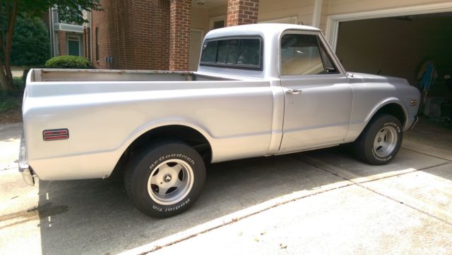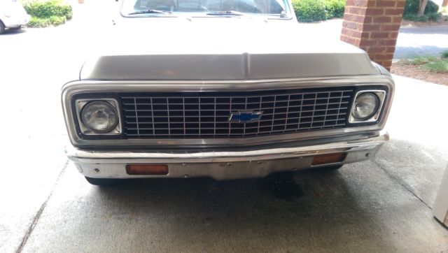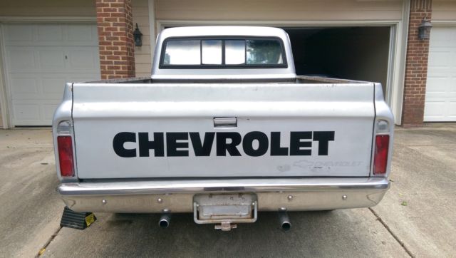 sales with alabama bill of sale but i do have the tennessee tittle for this truck...we dont title truck trucks in alabama but you may need it in your state you are buying a 1972 c10 swb pick u, reat running project truck that was restored 10 years and now its that time again...odometer on truck reads 30,813 but unknown mileage on body...very dependable with 350 motor and 350 turbo transmission out of a 1993 Chevrolet truck with 22,000 miles on each....the seat is out of the same 1993 truck......brakes hard as a rock, linkers, ights,wipers all work correctly.....the doors both operate excellent from the outside but needs attention from inside as does the windows they will roll up and down but need attention as well.... all the tires all have decent tread and will run for awhile......this truck is very dependable and mechanics are done in my book.....the body is straight down both sides as you can see in pictures and videos, ...this truck has one place on drivers side be, ne on drivers side door,one on passenger side front fender edge that needs body work....rockers seem fine.......clear coat is peeling on hood and on top of truck......truck needs restored but mechanics are done !.........inside the floor has patches in it and the inside of door were cut for speakers back in the day.Will need floor pan and bed pan may can be patched and slight steering rack leak