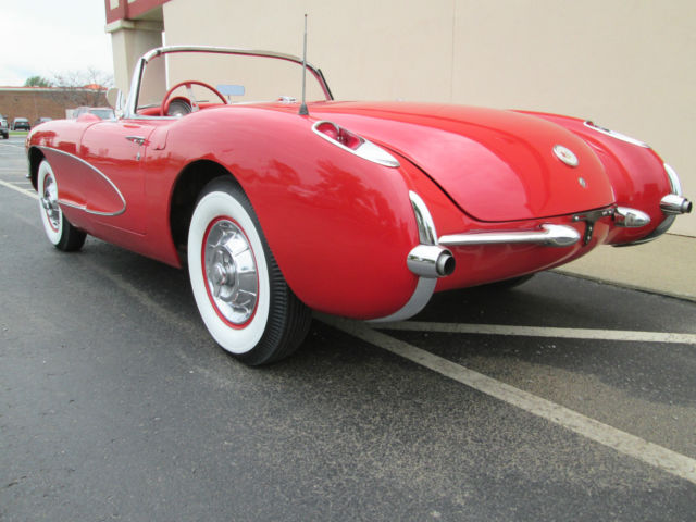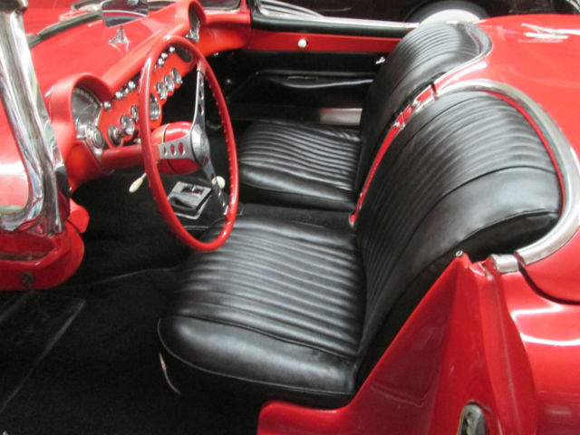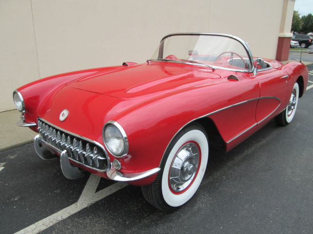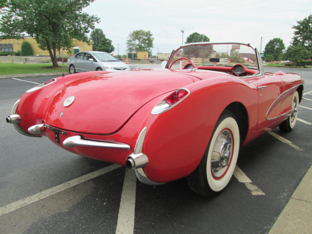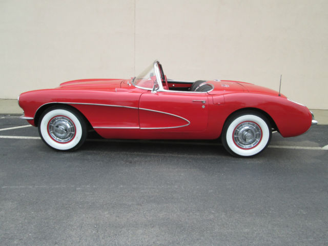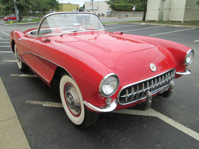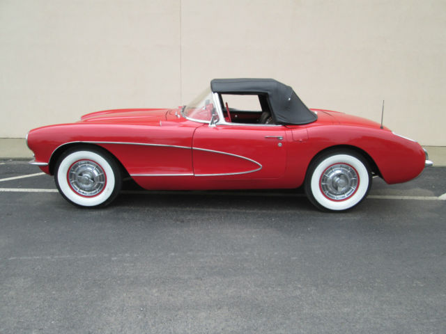 1957 CORVETTE, 83/230 HP ENGINE (NOM) CAST NUMBER 3789935. RARE POWER TOP CAR, EEDS ATTENTION. ONLY 1336 PRODUCED. POWER GLIDE AUTOMATIC TRANSMISSION. ONLY 1393 PRODUCED. SHINY RED PAINT WITH SOME IMPERFECTIONS. RED AND BLACK INTERIOR. ORIGINAL GAUGES. NICE CHROME ON FRONT BUMPERS AND GRILL. REAR BUMPERS AND TAIL LIGHTS LOOK LIKE NEW CHROME. DOOR POST CHROME HAS SOME PITTING. ORIGINAL HUBCAPS. NEW FIRESTONE WIDE WHITE WALL BIAS PLY TIRES. VERY NICE BLACK SOFT, OOKS NEW. CLEAN TRUNK AREA WITH WOOD TIRE BOARD AND RUBBER MAT. SOLID FRAME, O RUST PROBLEMS. RUNS AND DRIVES NICE.STK # 1957 RDMA 15. TRUE MILEAGE UNKNOWN.BUY WITH CONFIDENCE, HECK OUR FEEDBACK. DUE TO THE AGE OF THIS VEHICLE IT IS BEING SOLD AS-IS. NO WARRANTY. FOR MORE INFORMATION CALL TOM OR DON AT 615-584-0023 OR 615-584-4558. FOR MORE PHOTOS AND VIDEOS GO TO vintagevettes.net