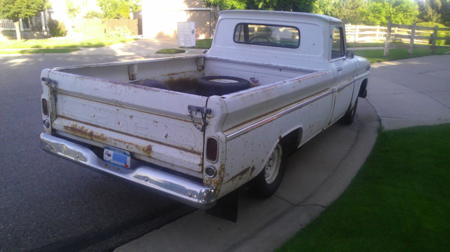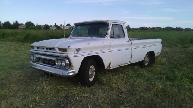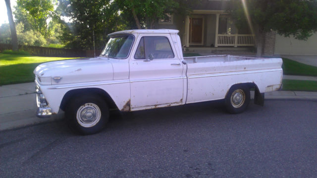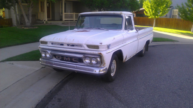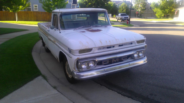 For Sale: 1966 GMC 1000 Fleetside pickup. I am the third owner of the vehicle. I purchased thetruck 14years ago from an individual in Grand Junction, O who bought it from the original owner's Estate (also in Grand Junction). Thesecond ownerdid not use or alter the vehicle but offered itfor sale shortly after purchase. At the time I purchasedthe vehicle, t had been out of use for 25 years and had just under 40,000 miles. The gas tank required cleaning, he fuel filter and pump needed to be replaced but it was in otherwise very good running condition. I have since used the truck regularly as a work vehicle, t now has just over 106,000 miles.The truckretains the original305 V6 engine and 4 speed manual transmission. It has been an excellent work truck. While I've owned the vehicle, 've removed and cleaned the gas tank (added an in-tank filter), eplaced the fuel pump/filter, arburetor, eater core,water pump, lutch, attery, ires and performed regular maintenance. The truck runs very strong, teers straight and starts reliably even in extreme temperatures. It is in very sound mechanical condition. The tires are relatively new (less than 2000 miles). The brakes function well but were last serviced 20,500 miles ago. The exhaust is in need of replacement. It would be a very good vehicle to continue to use as a regular work truck and would also be an excellent candidate for restoration. All major components are original. The paint is the original paint, aded with substantial surface rust as appears in the photos. There is rust through at the bottom of both front fenders, ll other panels are reasonably sound. The original wood bed is deteriorated but still in place under the steel diamond plate sheet that was installed by the original owner.The interior is in relatively good condition. The bench seat needs to be reupholstered. The dash contains an aftermarket radio that is functional, he original radio delete plate is inculded. Lights, eater and gauges are functional. The water temperature gauge works intermittently. Glass is scratched in placesbut unbroken. Included are the original owner's manual and paperwork/receipt file.All in all, good sound vehicle for daily use or restoration.The truck is listed at no reserve.It is for sale locally. The listing may be removed upon prior sale. Please contact me with any questions. Good luck with bidding. Thank you.