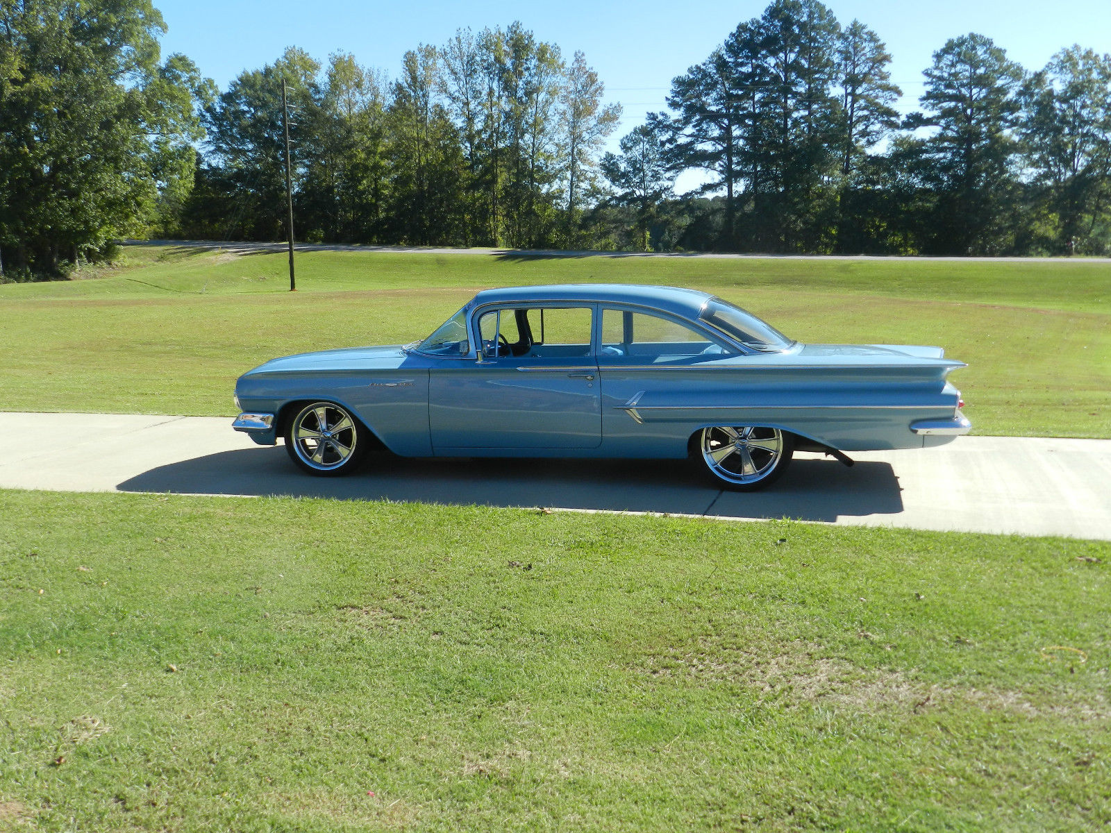 | 1960 BelAir. 350 engine with 700R4 transmission. The car has PS. manual disk brakes and AC. This car is a great driver. Has one small place on driver's seat (See Picture). Couple of small bubbles above rear wheel (See Pictures). Thanks. /p> |