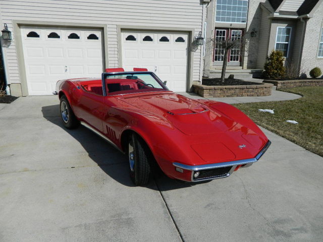 | VERY NICE TRUE 427/435 HP CORVETTE WITH LOTS OF DOCUMENTATION AND ORIGINAL TANK STICKER RED/RED WHITE TOP ALL GAUGES WORK EXCEPT CLOCK PAINT IS NICE CHROME IS NICE RED LINE TIRES SUPER GOOD FRAME VERY NICE RESTORED CAR GREAT DRIVER CLEAR TITLE LOOKS AND RUNS GREAT CALL JOHN 412.889.3776 THANK YOU |
