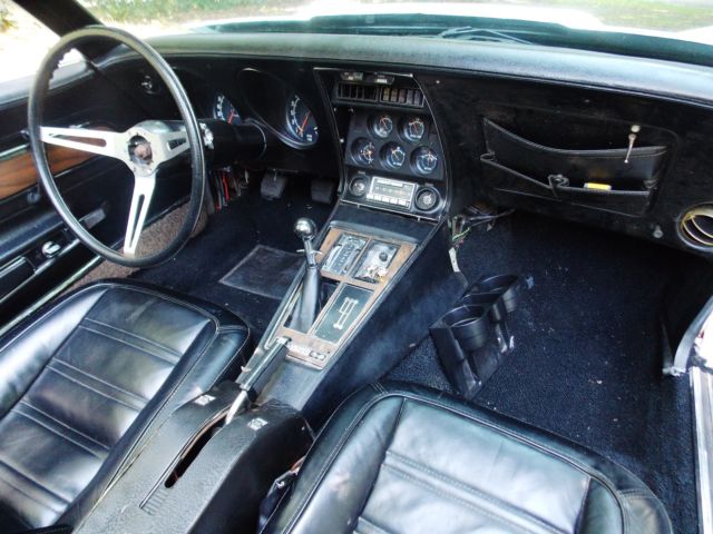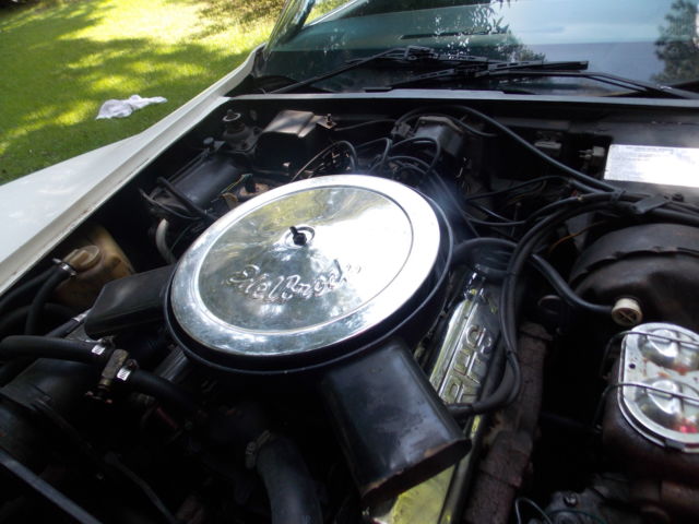 Unique vehicle. Has been in storage for last 7 years. Recently purchased from 3rd owner. Flushed gas tank when I got her home, ut in a new battery and upper/ lower radiator hoses, tarted right up and no problems since. Plenty of power.All original.Replaced carpet,3 compartment storage doors and frame, attery, assenger side window gear and moto, eadlight actuators new,windshield wipers, ach and speedometer cables. Has original radio, orks sometimes,..center console armresthas crack (fiberglass,easy to replace or fix) Paint not bad, as few chips where headlight bezel not adjusted and popped out, lso where front valance and nose of bumper are. Light, linkers, lashers work. Good seals on T- Tops and doors. New tires, ims are in great shape. Sharpe Lookin' Car ready for its new owner. I have a 75 vette also, o this one needs to go. My other one needs a lot of work still.