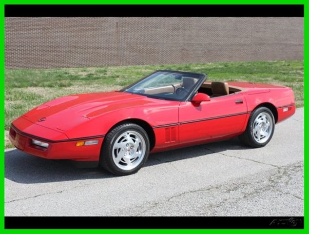 1990 CHEVROLET CORVETTE CONVERTIBLE. 5.7L V8 WITH 6-SPEED TRANSMISSION. BRIGHT RED WITH SADDLE LEATHER INTERIOR. LOADED WITH ELECTRONIC AIR CONDITIONING, OSE SOUND SYSTEM, OWER DRIVER AND PASSENGER SEATS, NGINE OIL COOLER, ND MUCH MORE. ALL ORIGINAL PAINT/INTERIOR/TOP. LIKE NEW CONDITION ON THIS 22,000 MILE CAR. CLEAN CARFAX VEHICLE HISTORY REPORT. NEVER WRECKED OR DAMAGED. NON SMOKER CAR THAT STILL SMELLS NEW. RUNS AND DRIVES EXCELLENT WITH ICE COLD A/C. WE HAVE BANK FINANCING AVAILABLE WITH SUPER LOW RATES, IVE ADAM ADKINS A CALL NOW AT 731-571-8000 OR 731-587-2277.