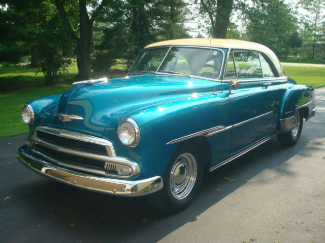 1952 Chevrolet Bel air 2 door hardtop restored, ith Fenton dual 1 barrel carbs. and split manifold dual exhaust. Added power steering, igital instruments in dash to include temperature, uel, il pressure, oltage and speedometer. Radio in glove box with CD player, nbsp;Interior redone in vinyl and cloth. Original radio in dash, hrome reverse rims with chrome baby moon hub caps. Digital brake lights, ail lights, top lights, fter market turn signals, ew ignition switch, 2 volt system with alternator, very dependable, ttractive and well maintained car.